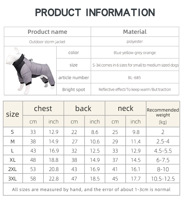 Preste atención a la circunferencia del pecho y, para las cuatro piernas, debe adaptarse a la circunferencia del pecho y la longitud de la espalda.