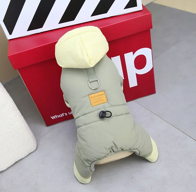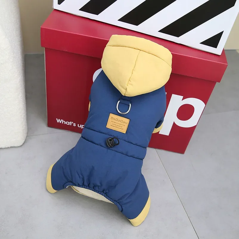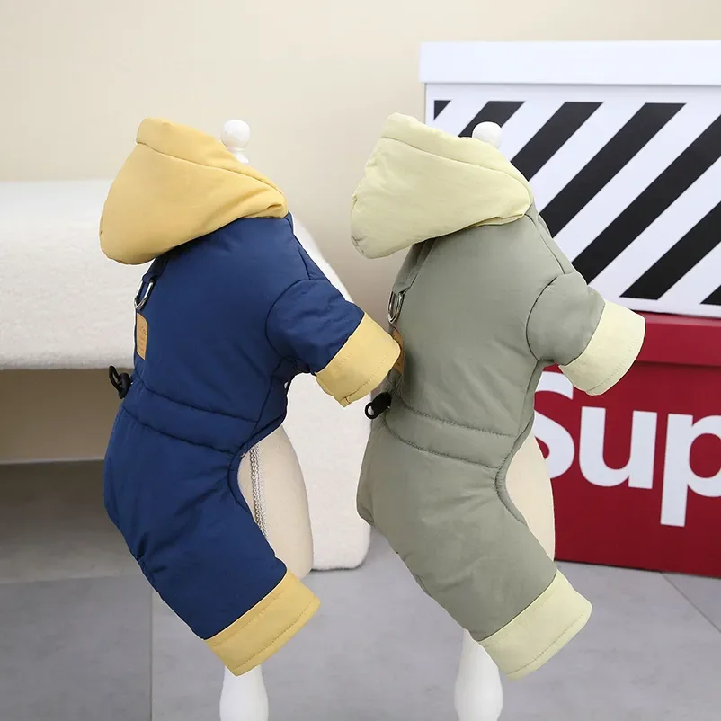 Mono impermeable para perro con sombrero, forro polar cálido, mono para perro de invierno, chaqueta para cachorro de 4 patas, ropa acolchada para perro para perros pequeños[Título]: mono para perros