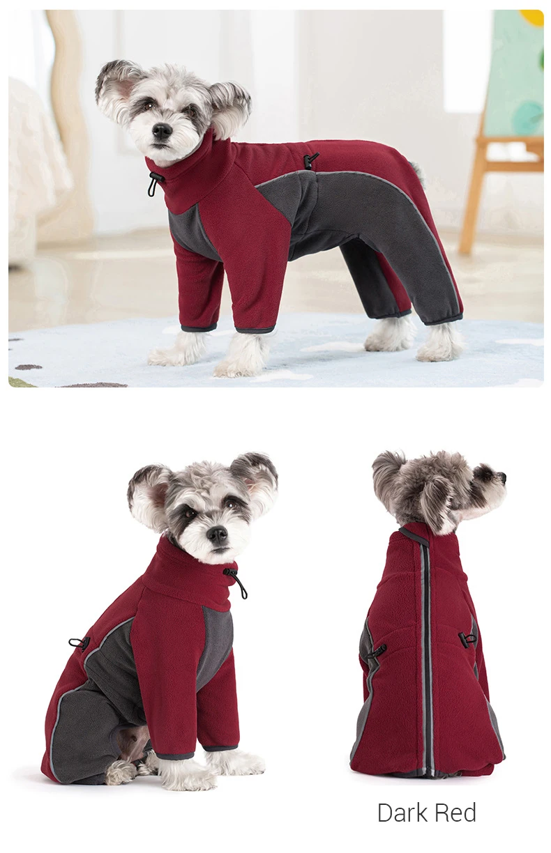 Mono de invierno para perros, monos cálidos de lana gruesa para perros pequeños, ropa reflectante a prueba de viento para cachorros, chaqueta ajustable para exteriores