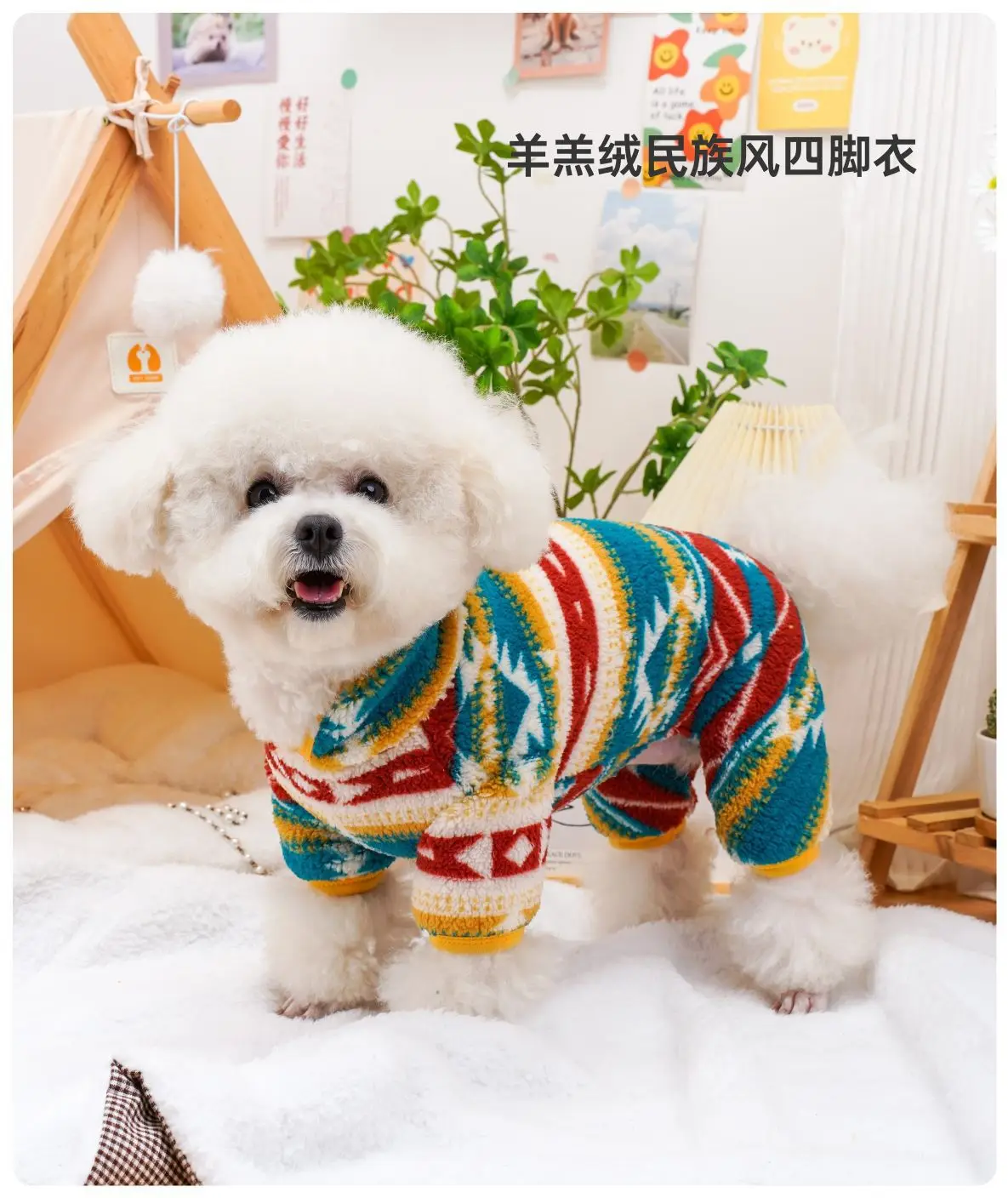 Mono de lana de cordero para mascotas, pijamas para perros y gatos pequeños, ropa de felpa de cuatro patas, oso de peluche, perro pequeño, Otoño e Invierno