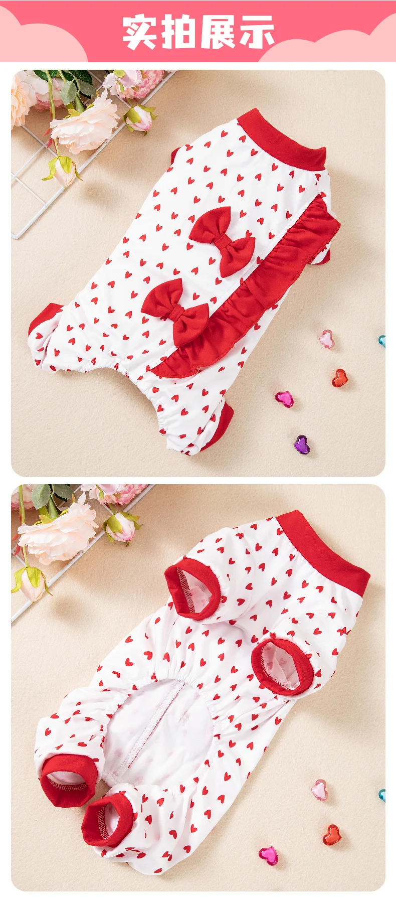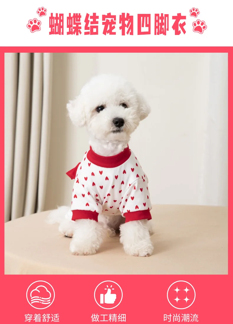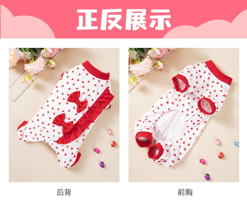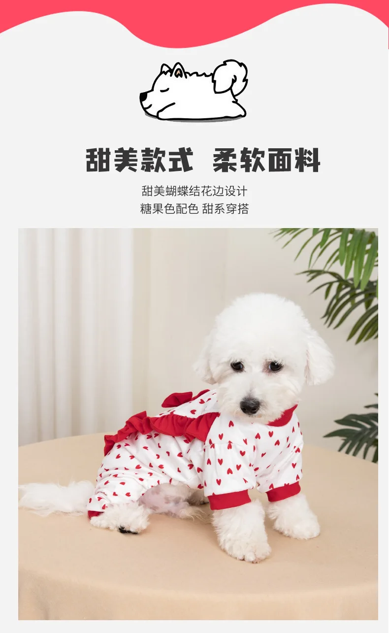 Mono para mascotas de primavera y otoño, ropa con estampado de amor de tamaño pequeño y mediano, ropa de cuatro patas para perros, ropa diaria para exteriores, pijamas para perros