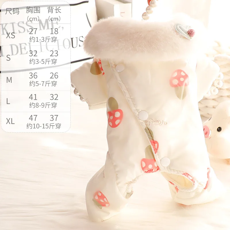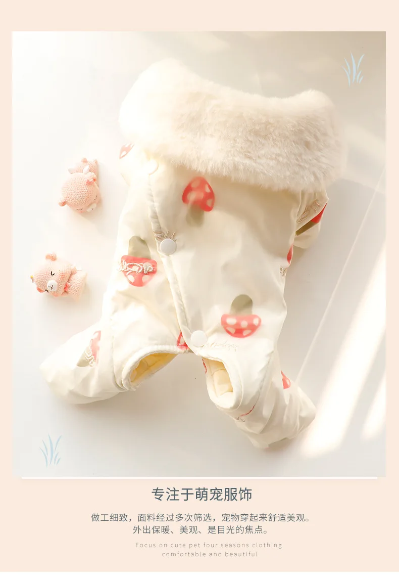 Mono de otoño e invierno para mascotas, abrigo para el vientre, peluche de princesa para perros pequeños, pantalones de cuatro patas, ropa para cachorros, pijamas para perros pequeños