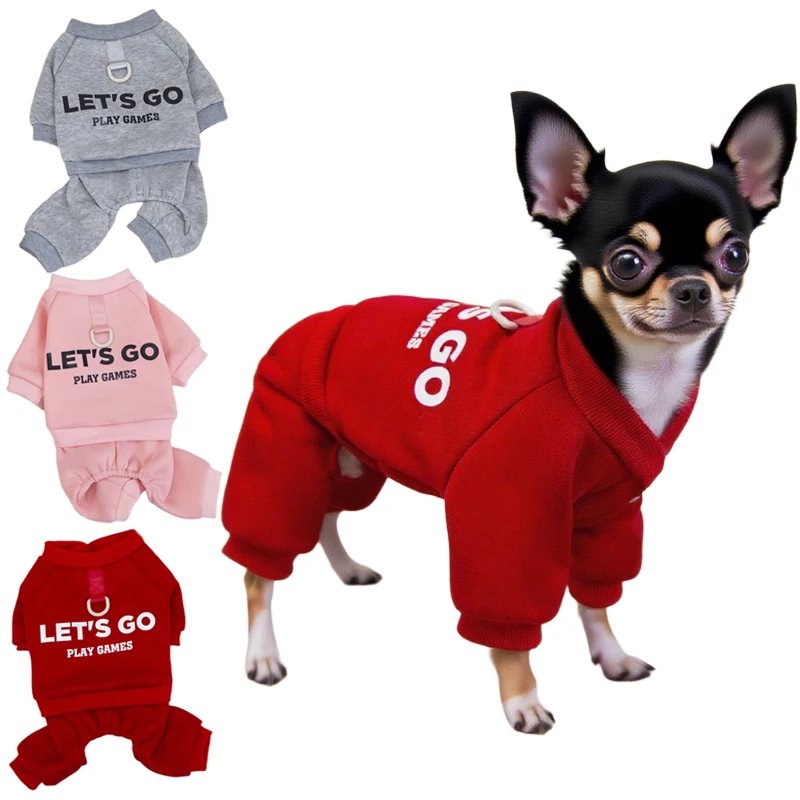 Mono de perro de 4 patas, pijama suave forrado de lana para cachorros, monos con estampado de letras para perros pequeños y medianos, ropa de Otoño Invierno