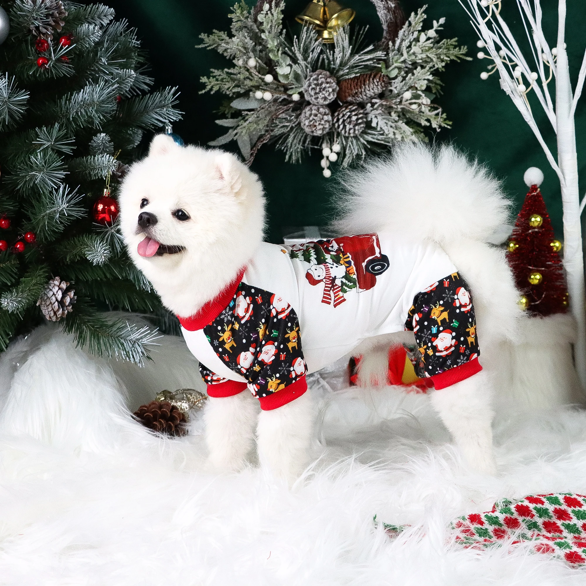 Mono para perros, ropa suave para perros con letras de Feliz Navidad, pijamas de alce y Papá Noel, disfraces para cachorros, perros y gatos, Chris