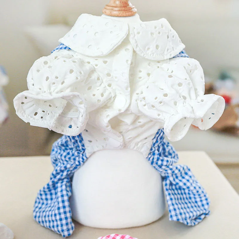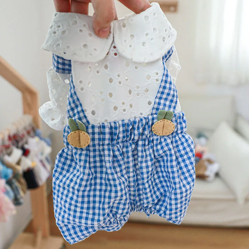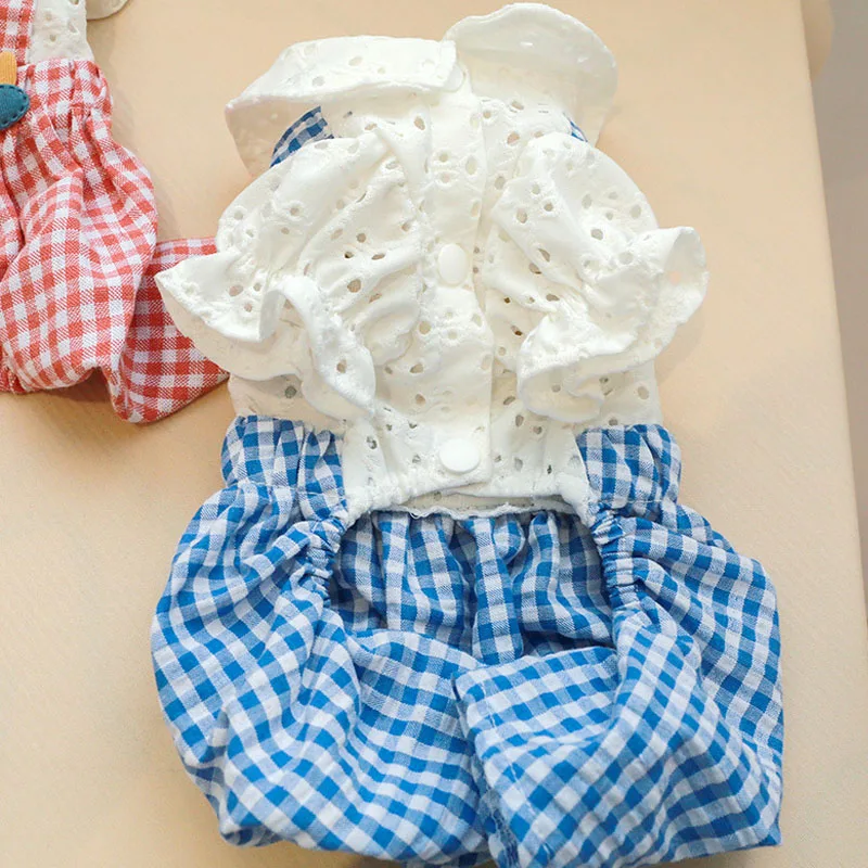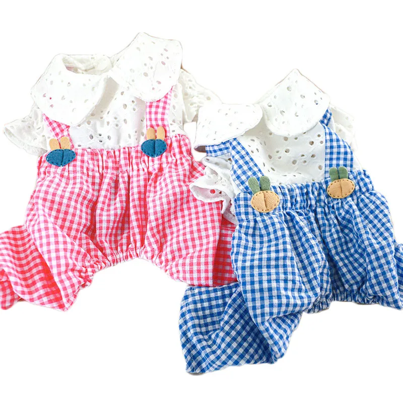 Ropa para perros dulces Primavera Verano rosa azul PJS Mono para perros pantalón a cuadros camiseta blanca monos para mascotas pijamas para perros pequeños Dachshund