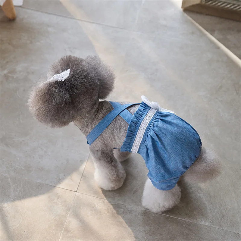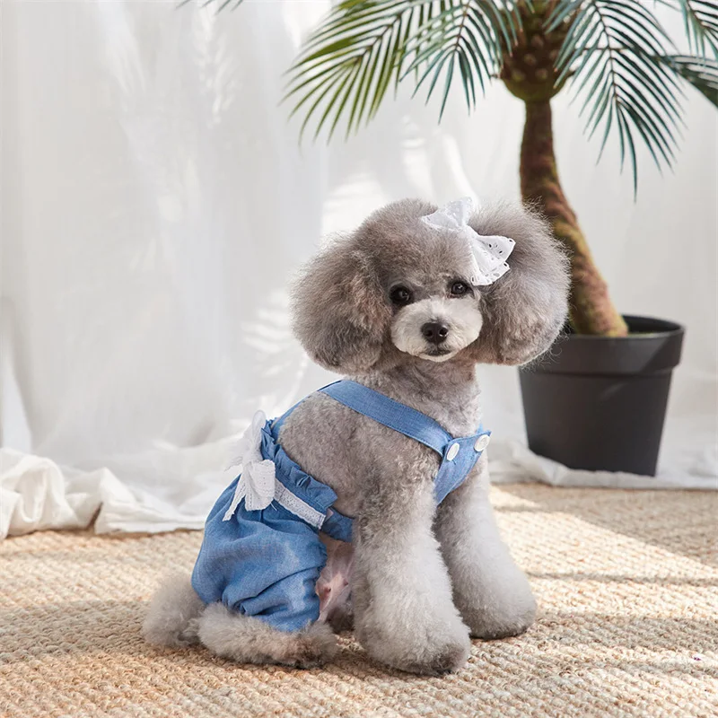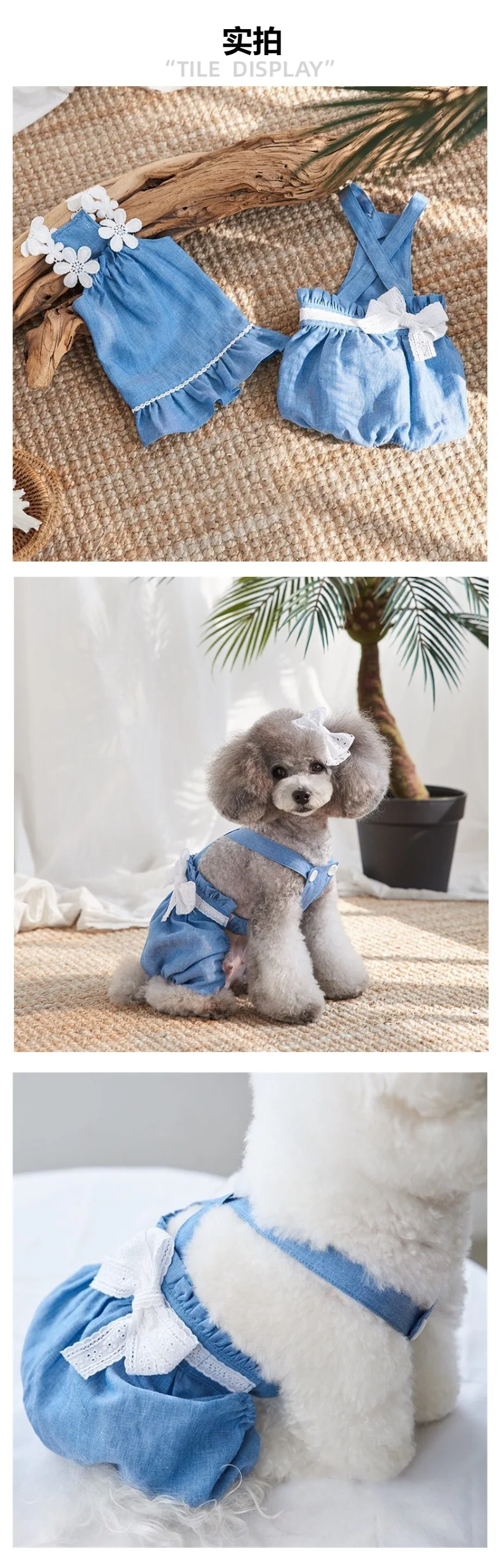 Mono de primavera para mascotas, gato vaquero, correa de dos piernas, ropa para perros de peluche, sombreros con lazo, ropa para cachorros, mono para perros
