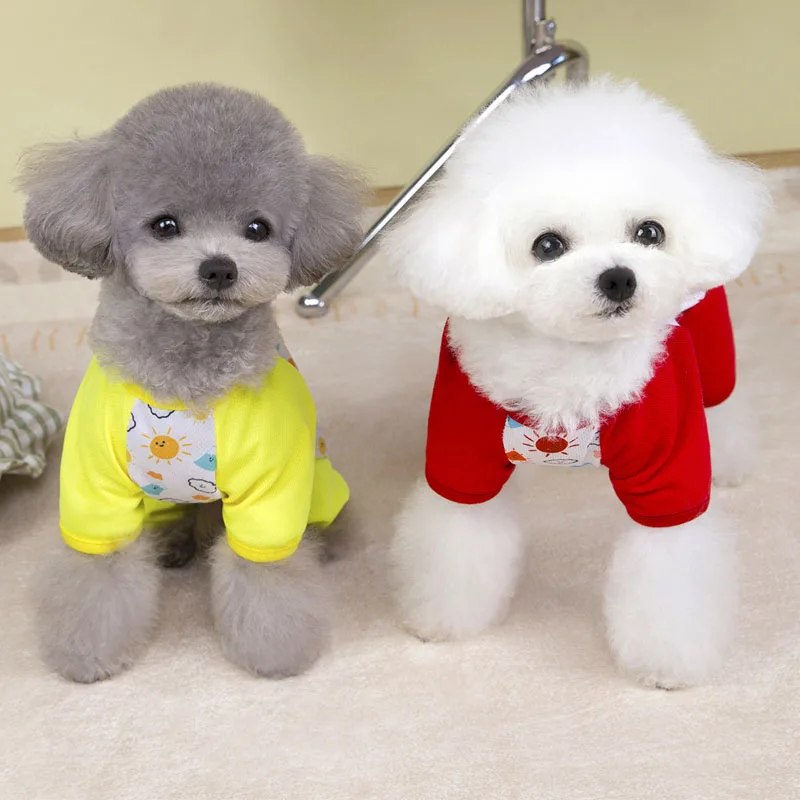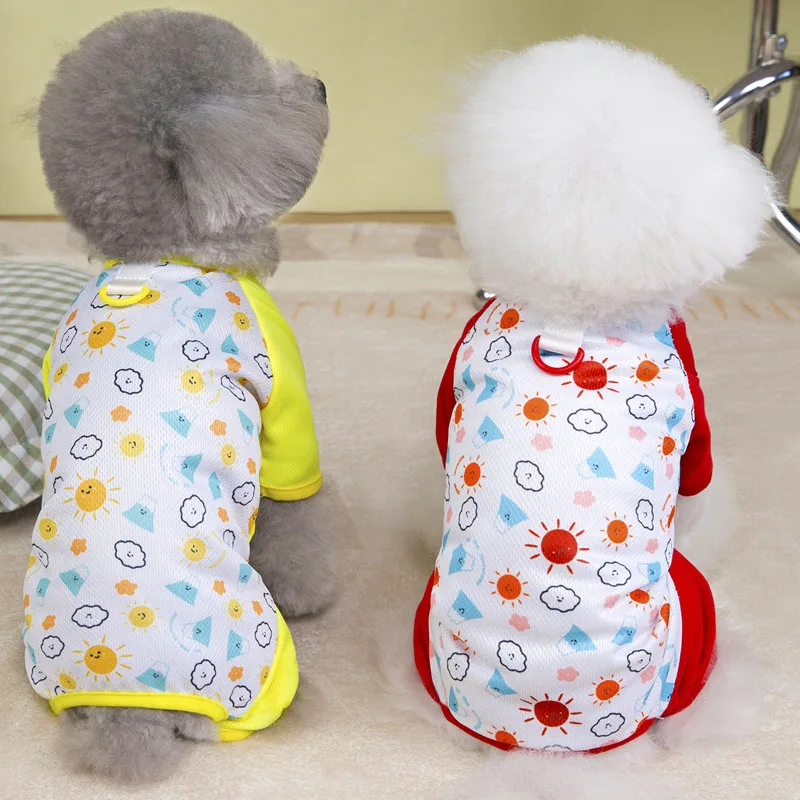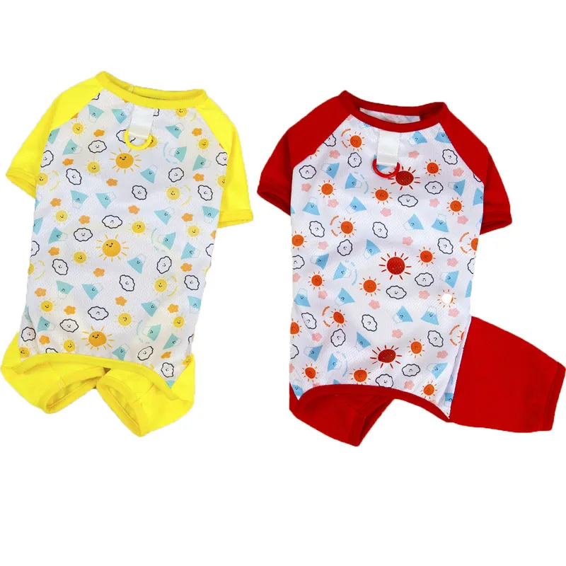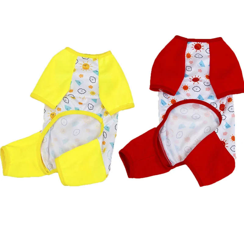 Ropa de malla para perros, mono rojo y amarillo de verano, pijamas para perros pequeños, chándal con protección solar Chiwawawa, mono para mascotas, pijamas todo en uno XXL