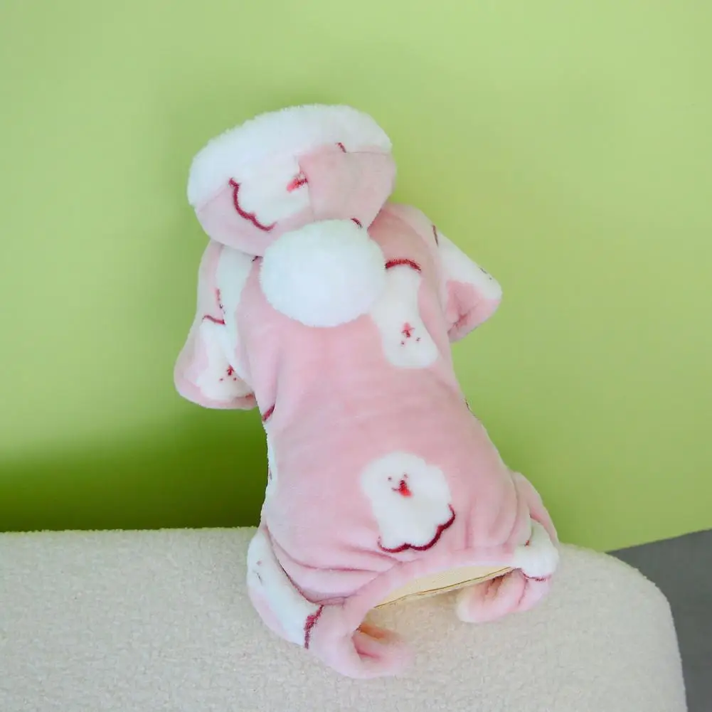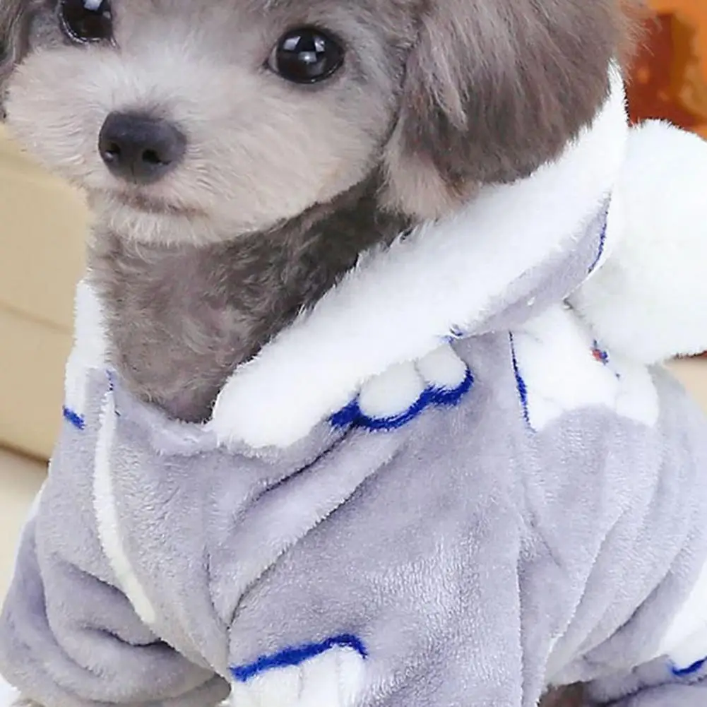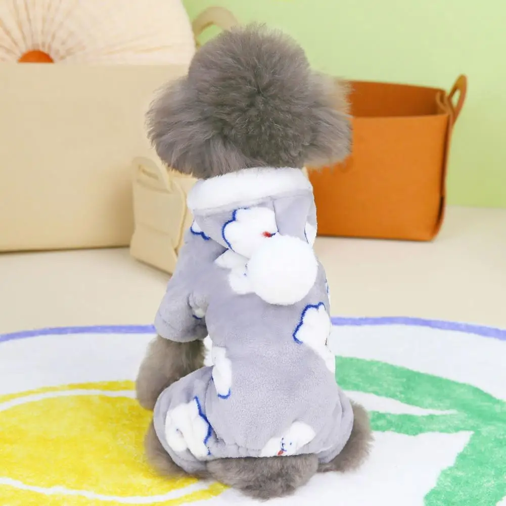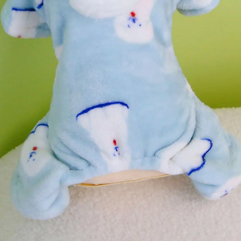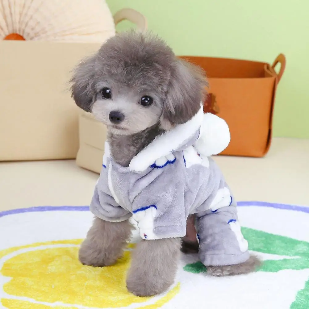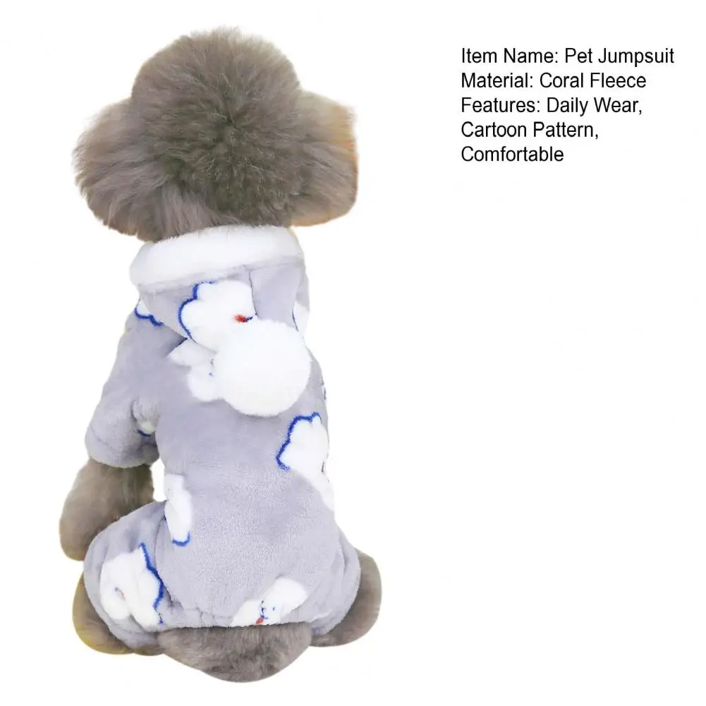 Mono de tela gruesa para mascotas, elegante mono de invierno para mascotas, bonito pijama de lana con patrón de dibujos animados para perros, traje cálido de cuatro patas pequeño