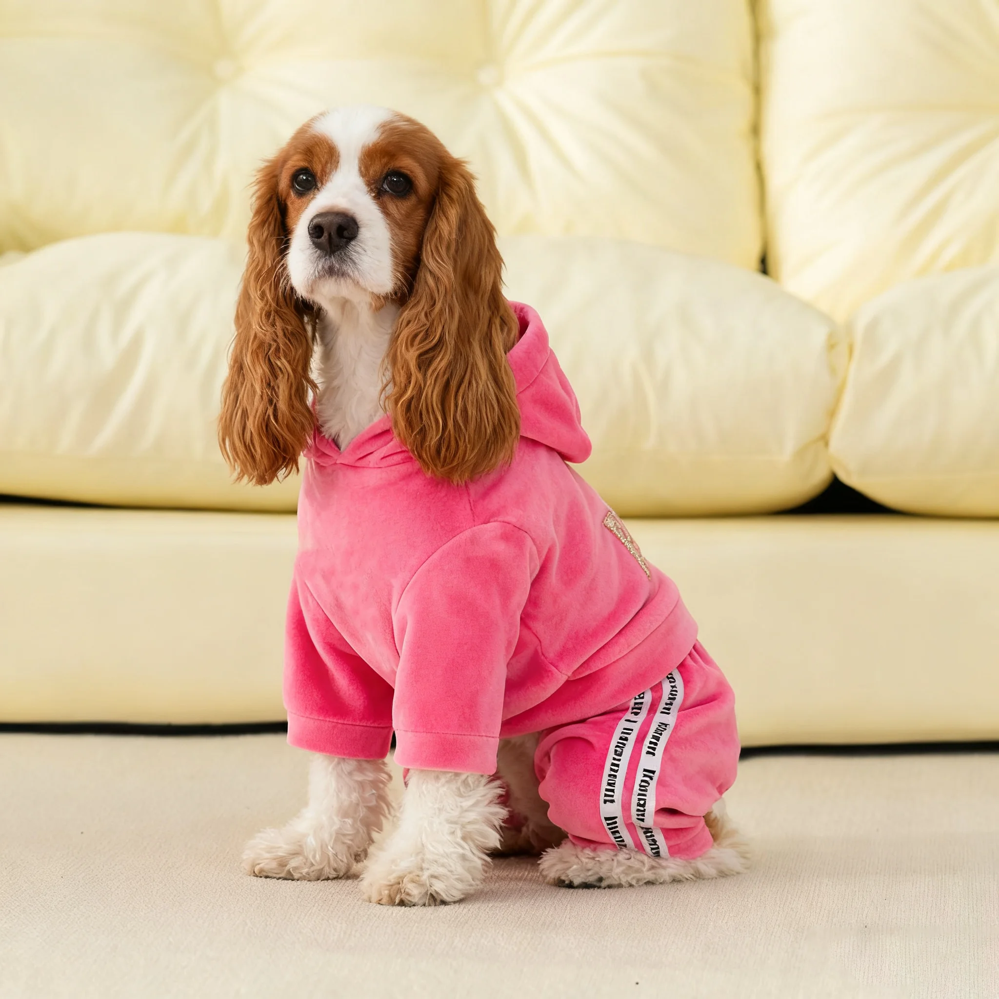 Mono de terciopelo súper suave para perros, ropa para perros de primavera y otoño para perros pequeños, chándal con capucha de 4 patas, pijama