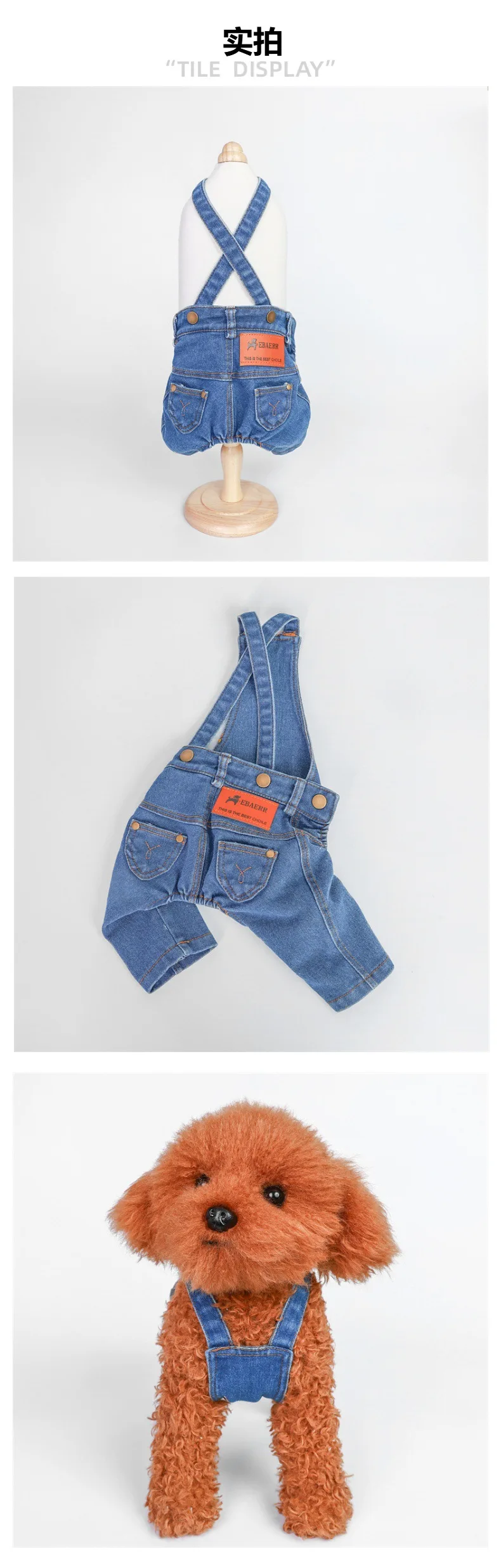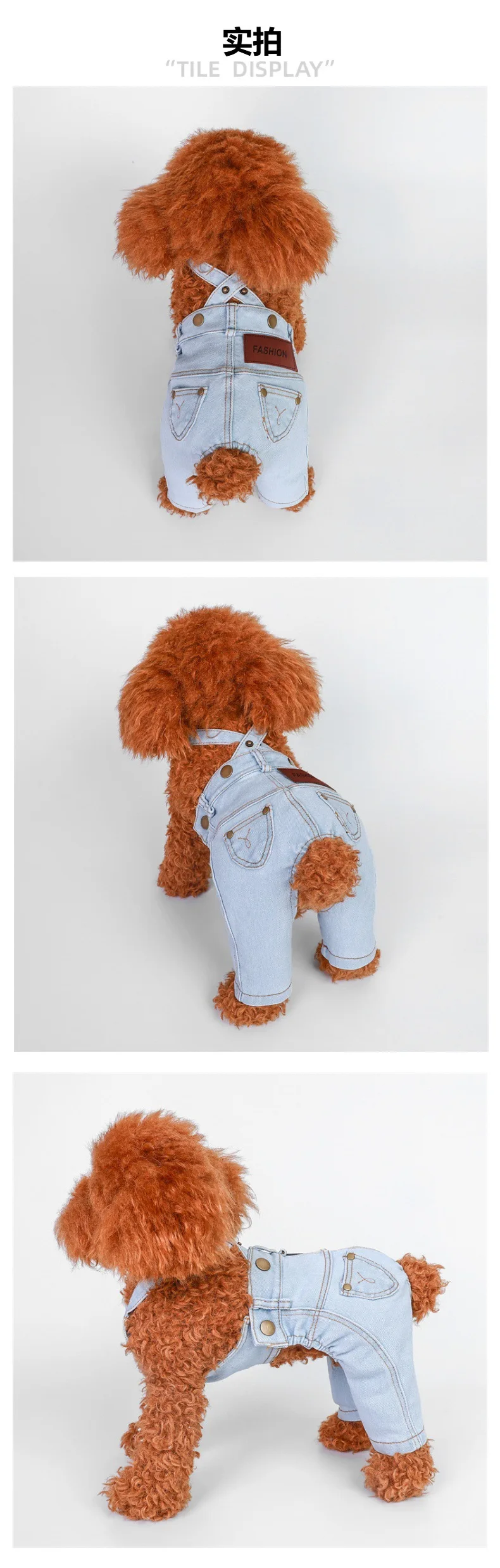 Mono vaquero de alta calidad para perros pequeños en primavera y otoño: ropa acogedora para mascotas perfecta para cachorros de peluche