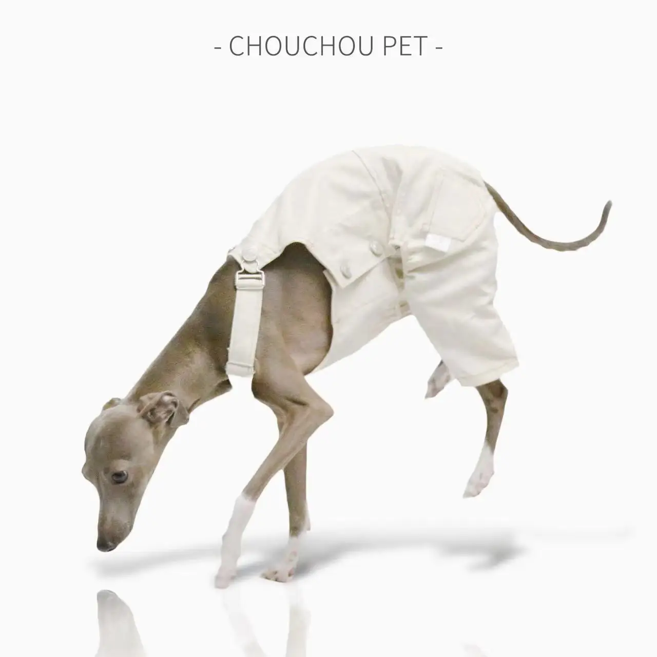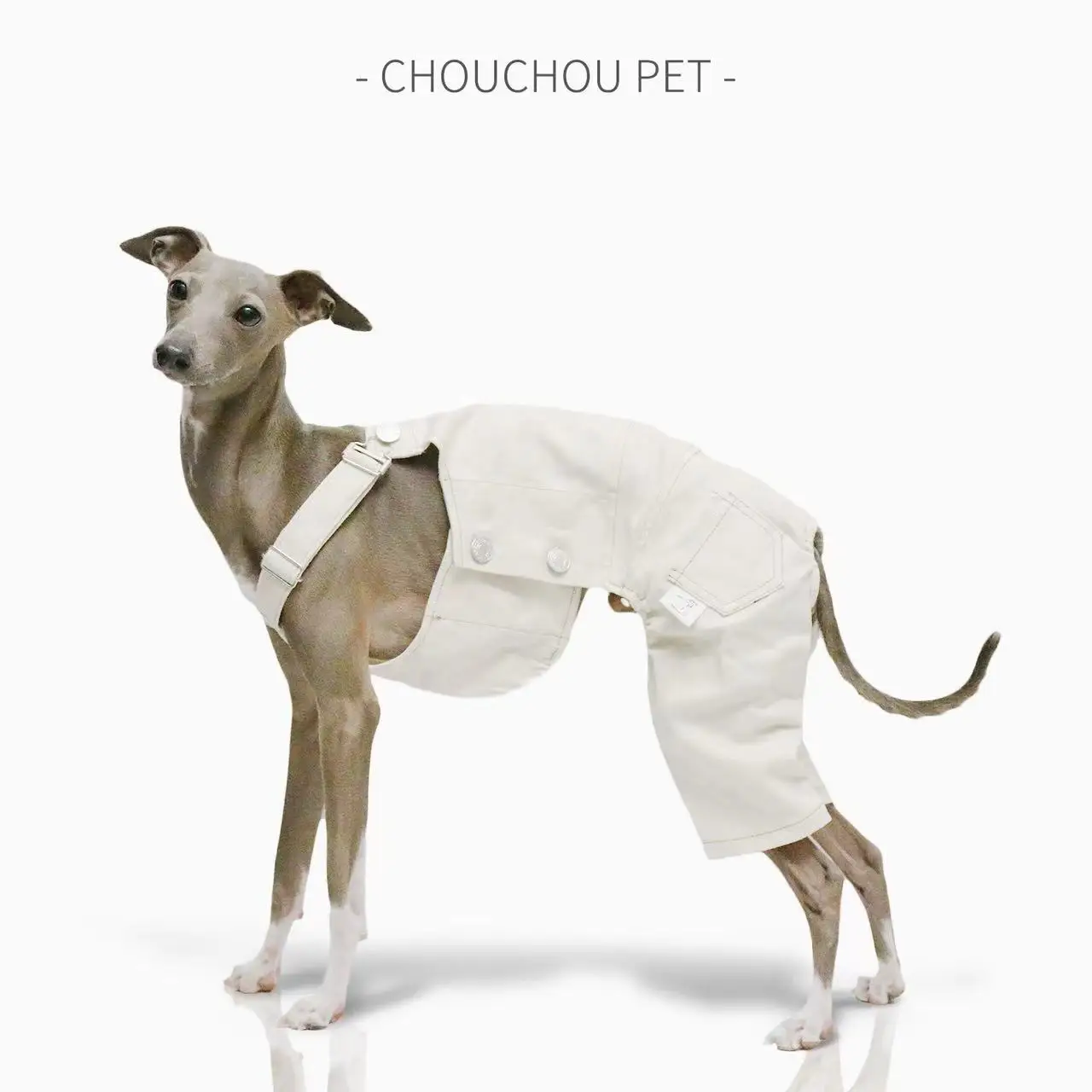Salopette de mezclilla blanca para perro grande, Protector de pierna clásico Retro, Whippet de color gris italiano, pantalones para perros pequeños y medianos