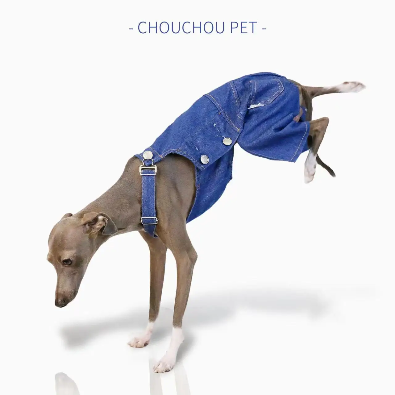 Salopette de mezclilla de color gris italiano, tela de protección de piernas clásica retro, pantalones ajustables whippet de moda