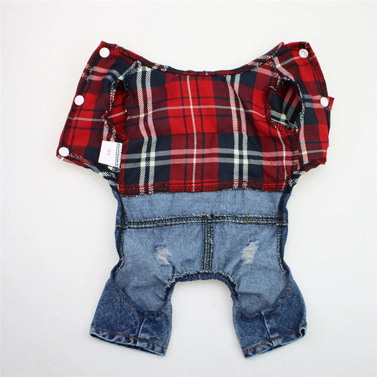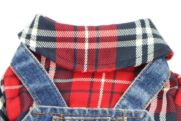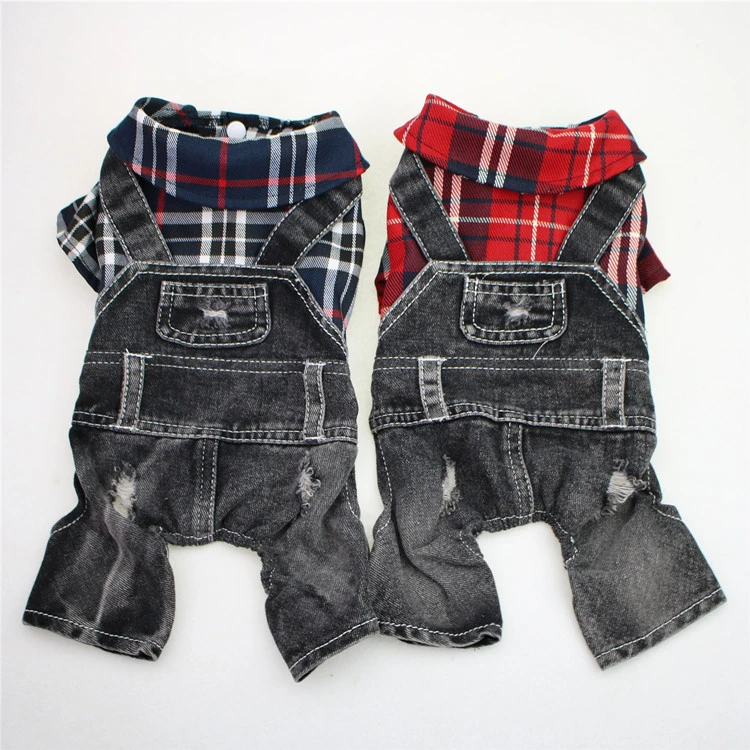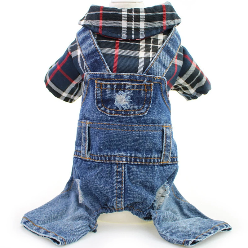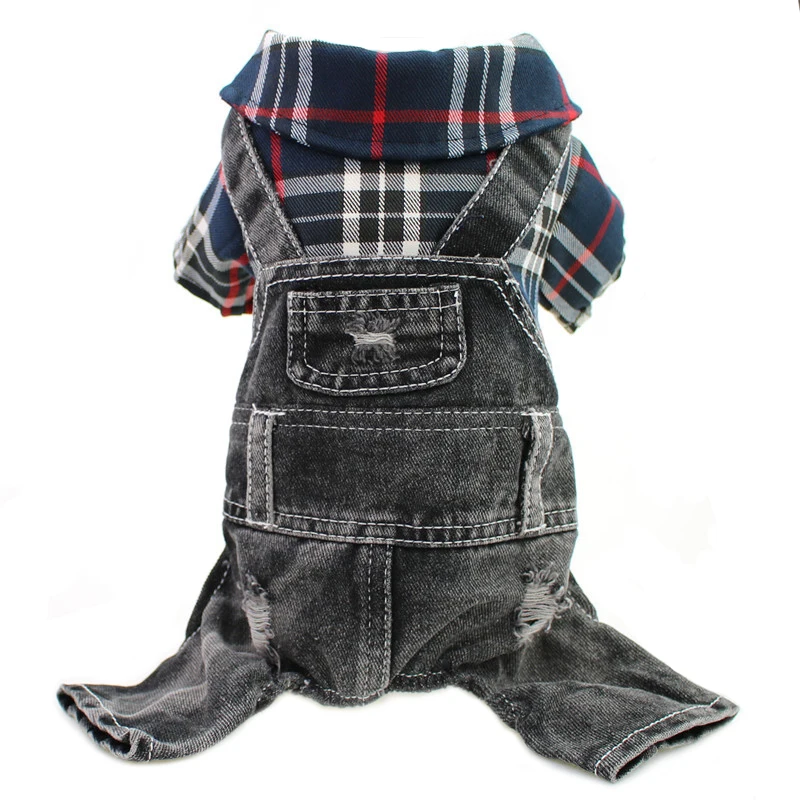 Mono vaquero negro para perros, camisa a cuadros, monos para perros, ropa de primavera para perros pequeños, chaqueta vaquera Yorkie, ropa para mascotas