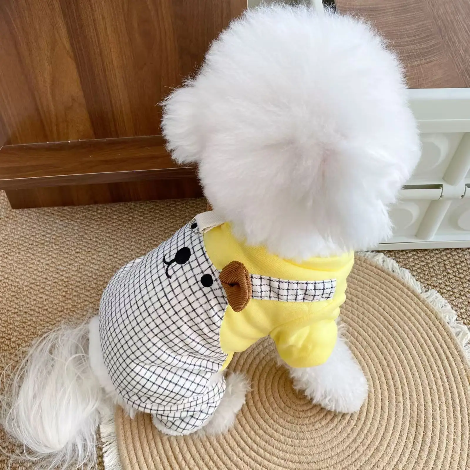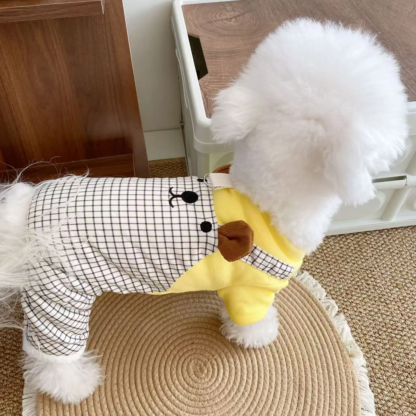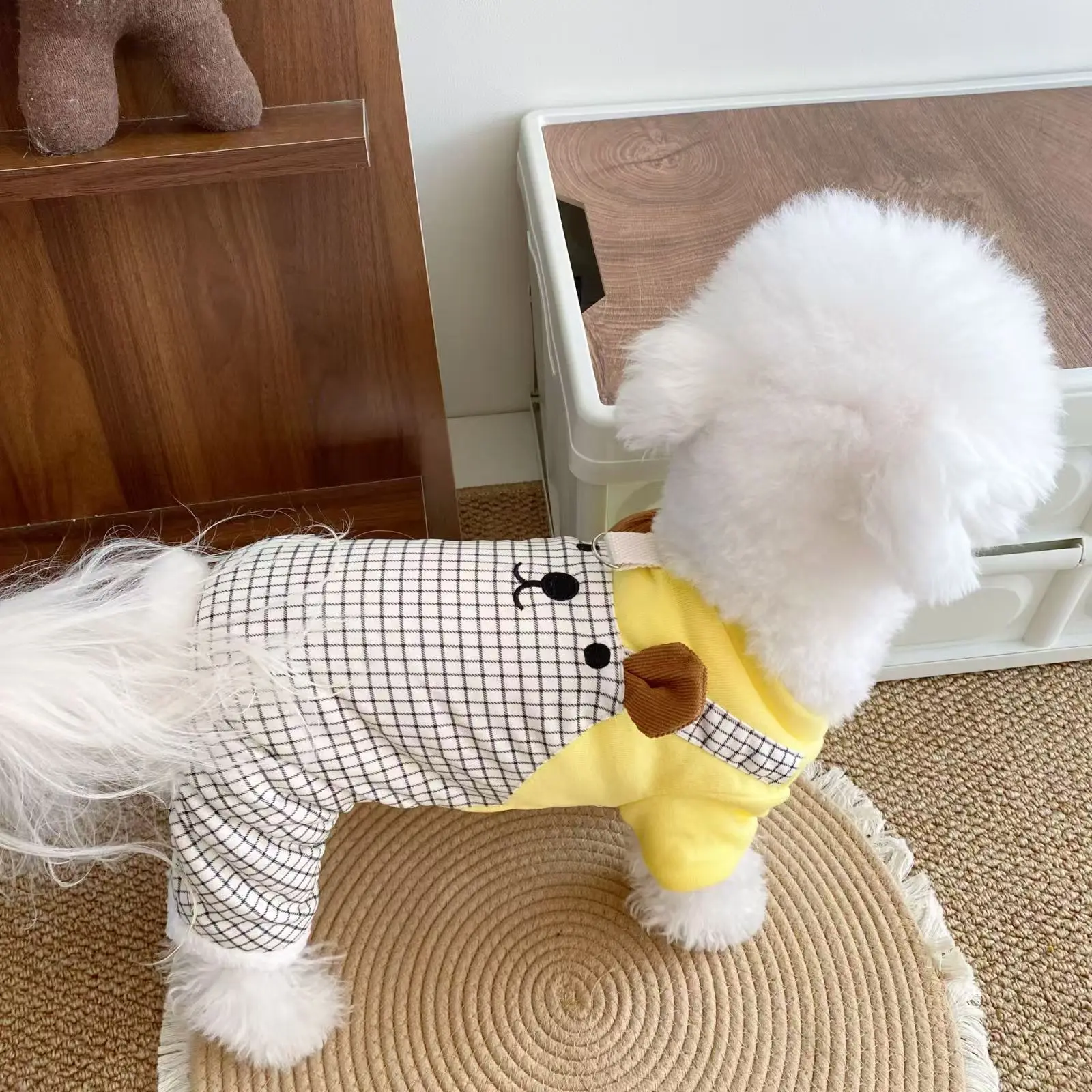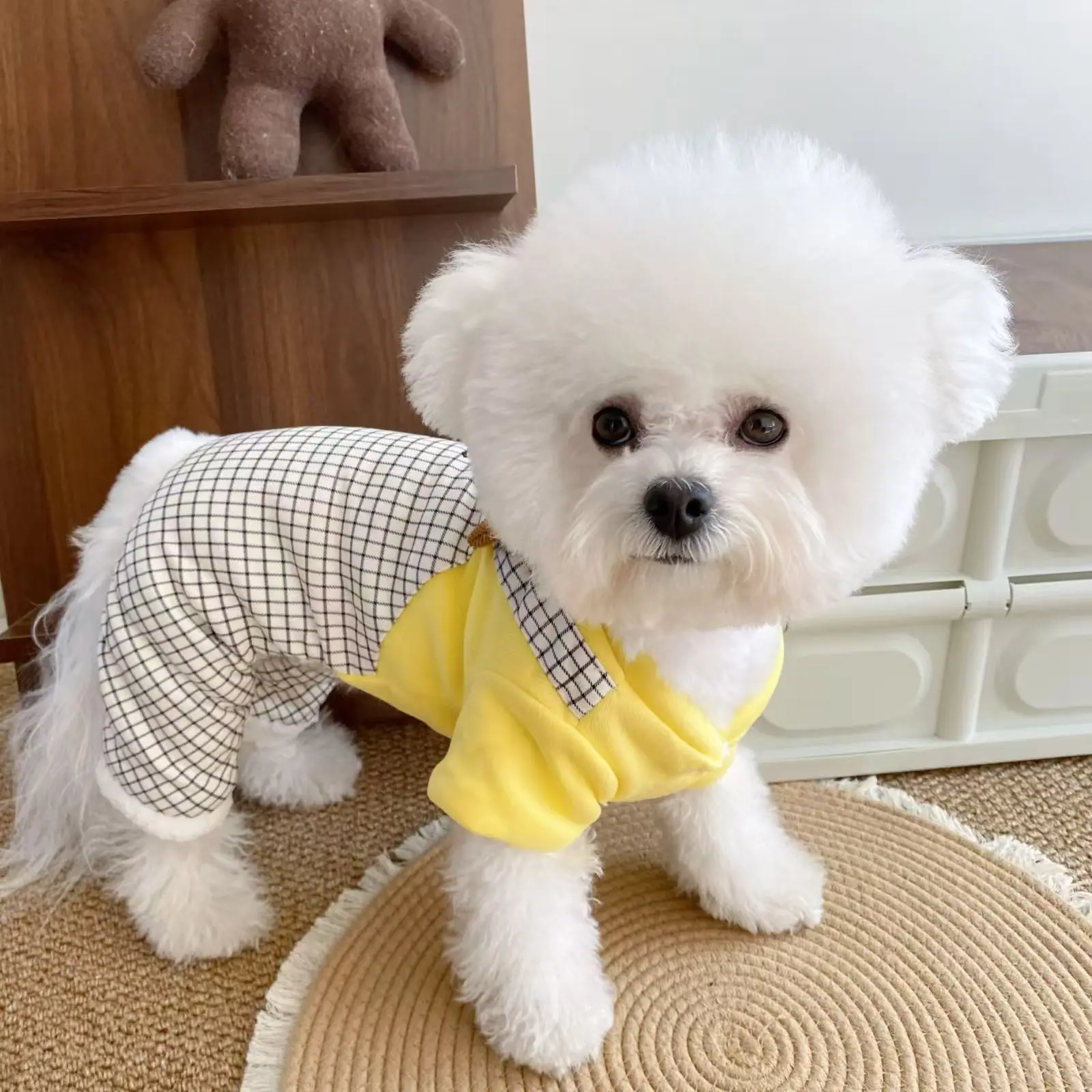 Monos a cuadros de otoño e invierno para mascotas, ropa gruesa de cuatro patas de felpa para gatos y mascotas, mono de oso de peluche para otoño e invierno, cachorro