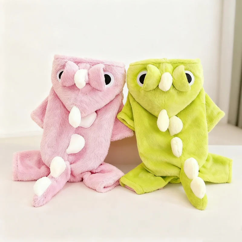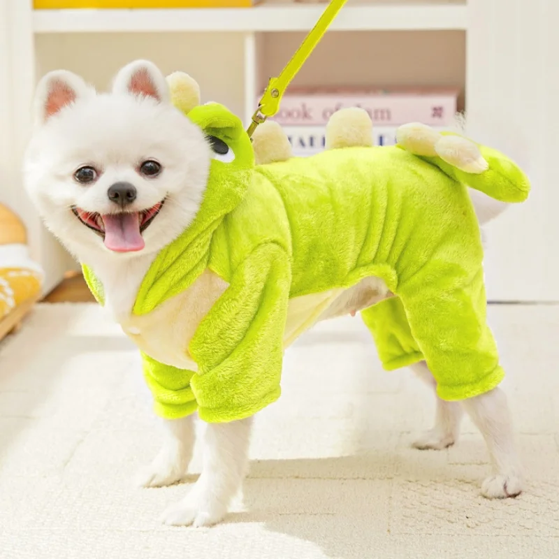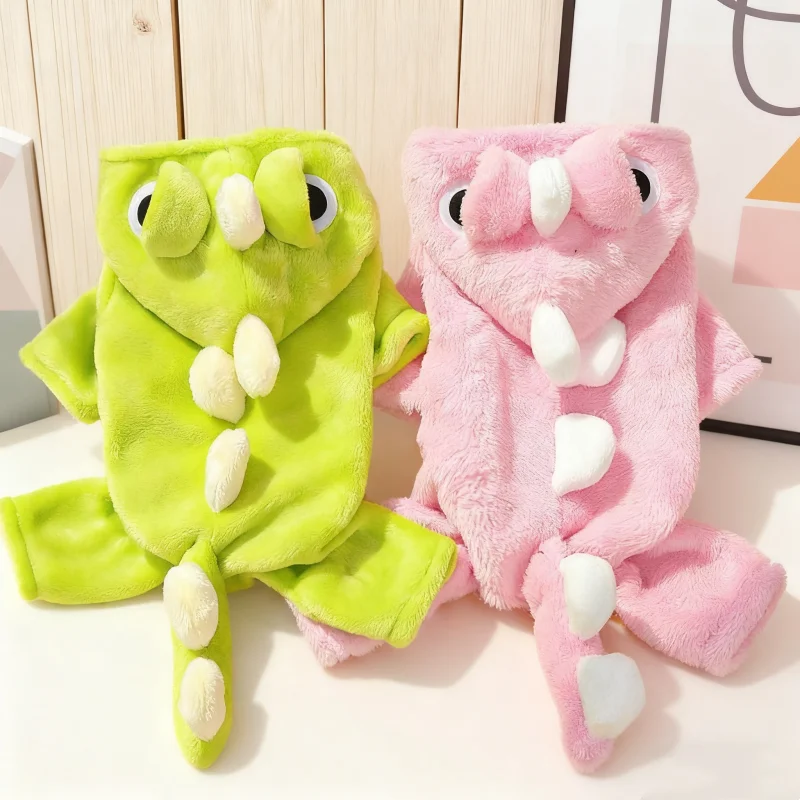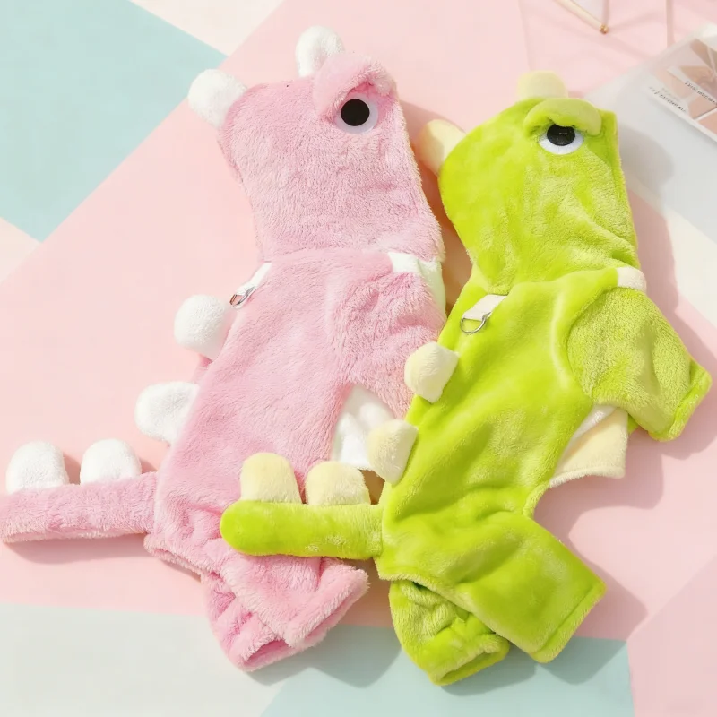 Bonitos monos de felpa para perros sólidos, ropa cálida de invierno para perros, monos de moda para cachorros, chaqueta con patrón de dinosaurio, monos para gatos, disfraces para mascotas