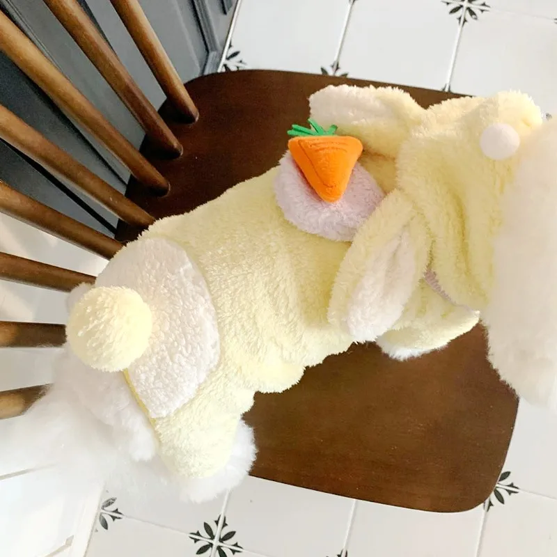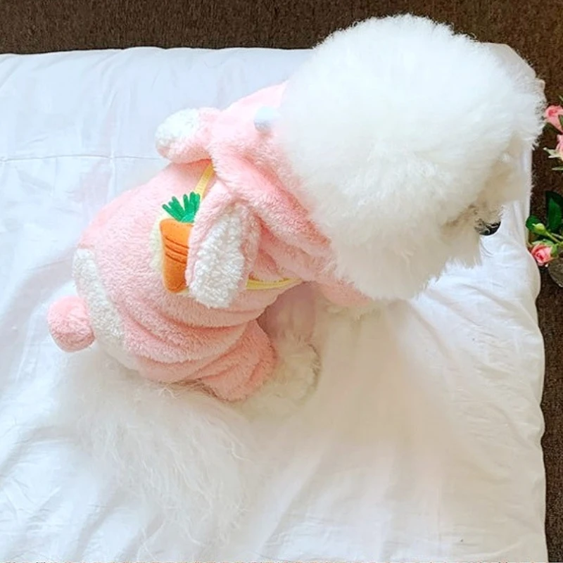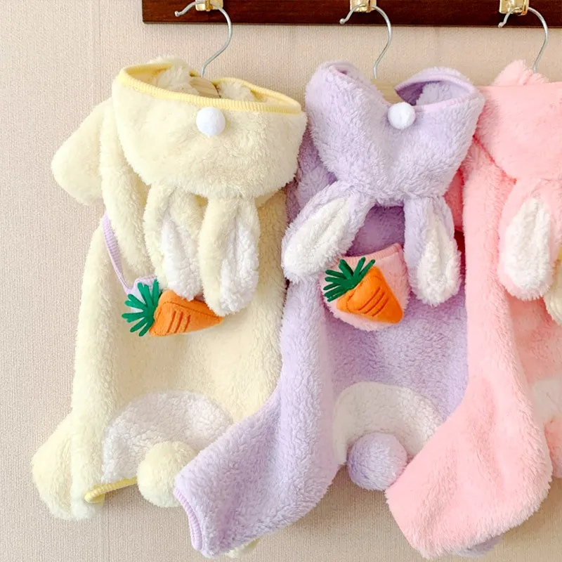 Característica:Bonita ropa de conejo de cuatro patas/Tela de terciopelo Ártico/suave y cómodo/Forro de algodón grueso/cálido/envolvente/cuidado de la piel delicado/hermoso y cálido/escote exquisito/cómodo pero insoportable/puños elásticos forrados/cortavientos y cálido