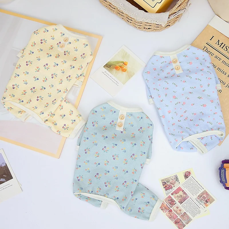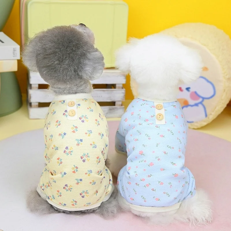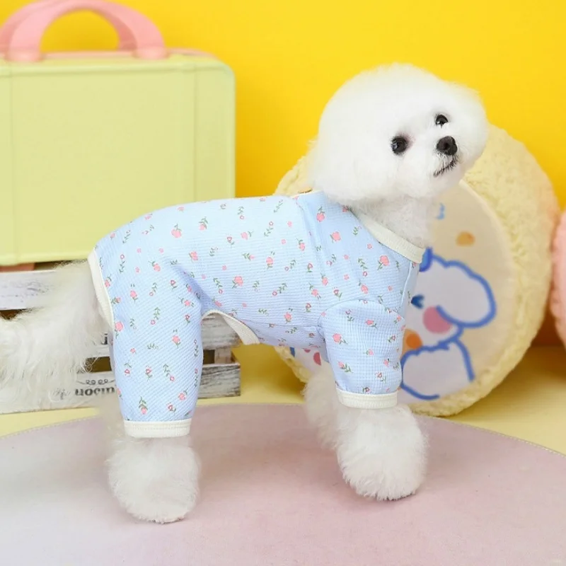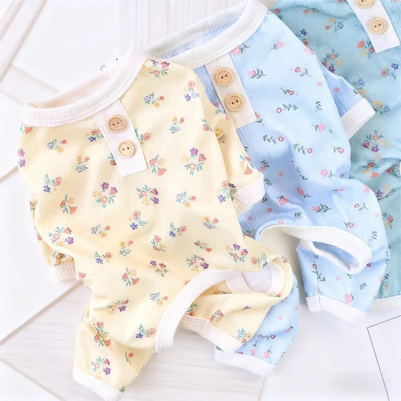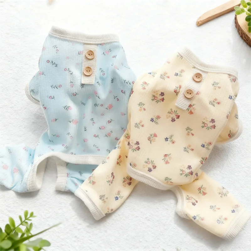 Monos cálidos de invierno para perros, ropa a la moda para perros, ropa de cuatro patas con patrón de flores, pijamas para cachorros, monos suaves y bonitos para gatos, monos para mascotas
