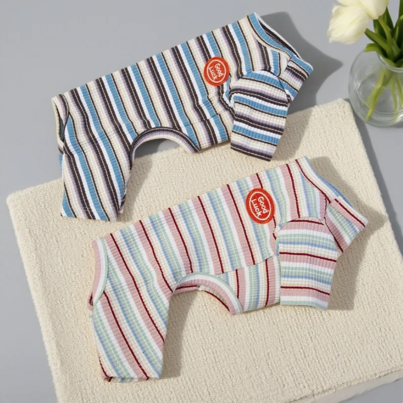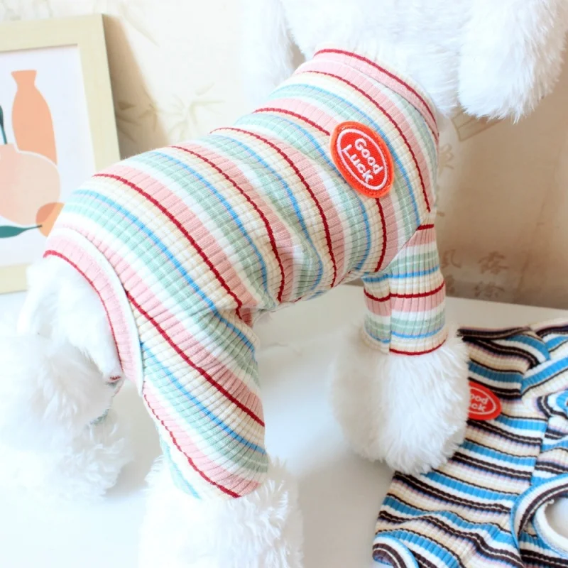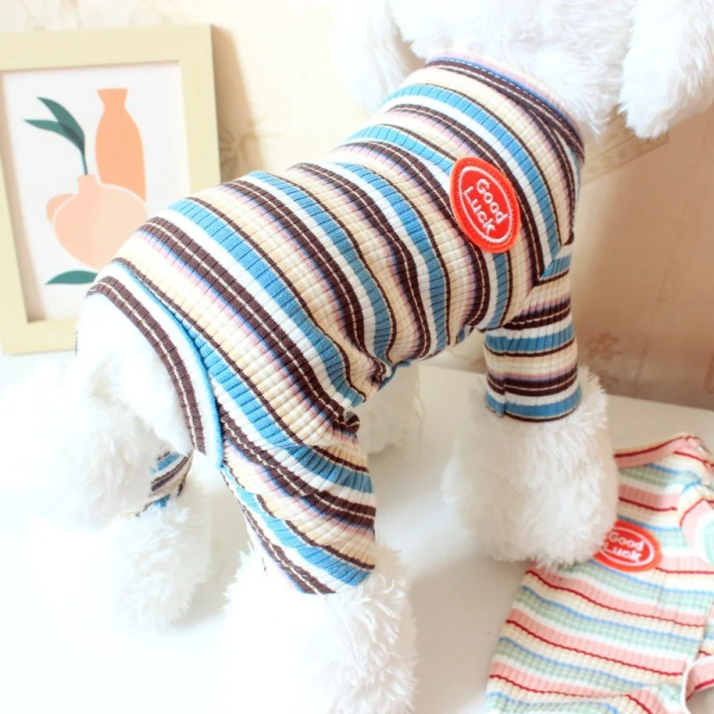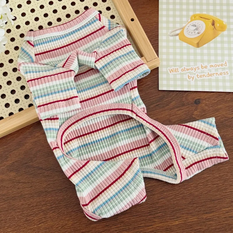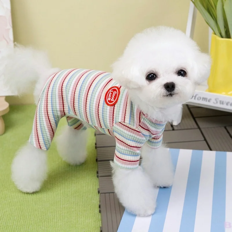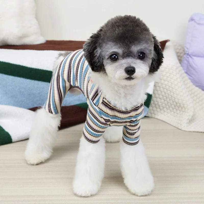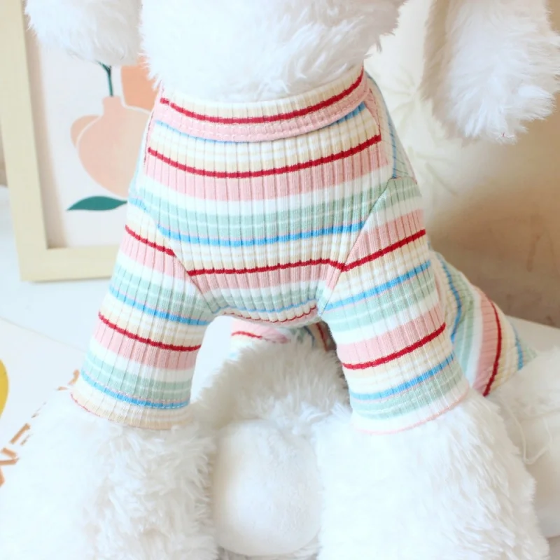 Monos cálidos de otoño para perros, ropa de moda para perros, monos suaves y bonitos para cachorros, monos para gatos a rayas coloridas, pijamas para mascotas, disfraz de caniche