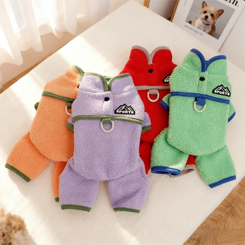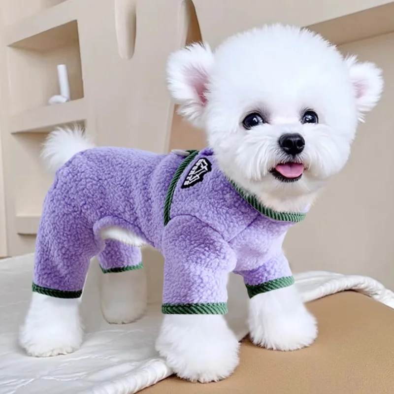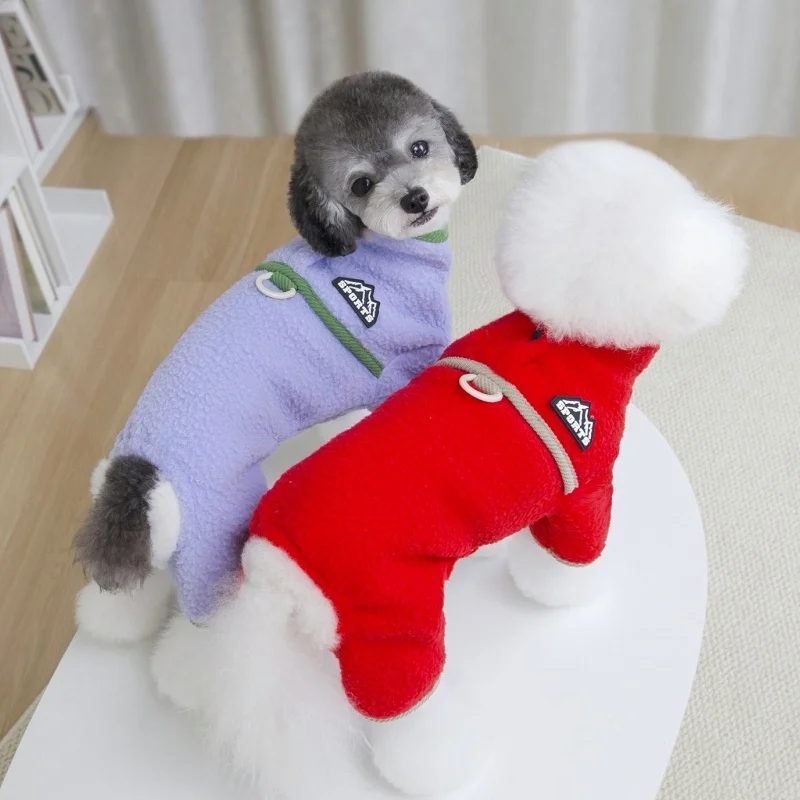 Monos de felpa para perros de invierno, ropa cálida y suave para perros de cuatro patas, peleles de lujo para cachorros, pijamas bonitos y sólidos para gatos, monos Bichon para mascotas