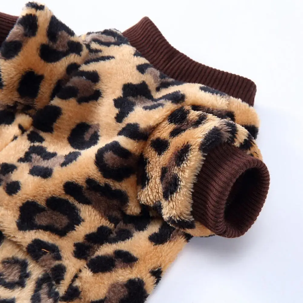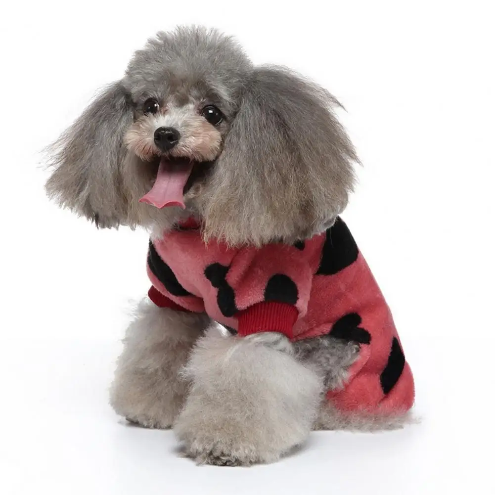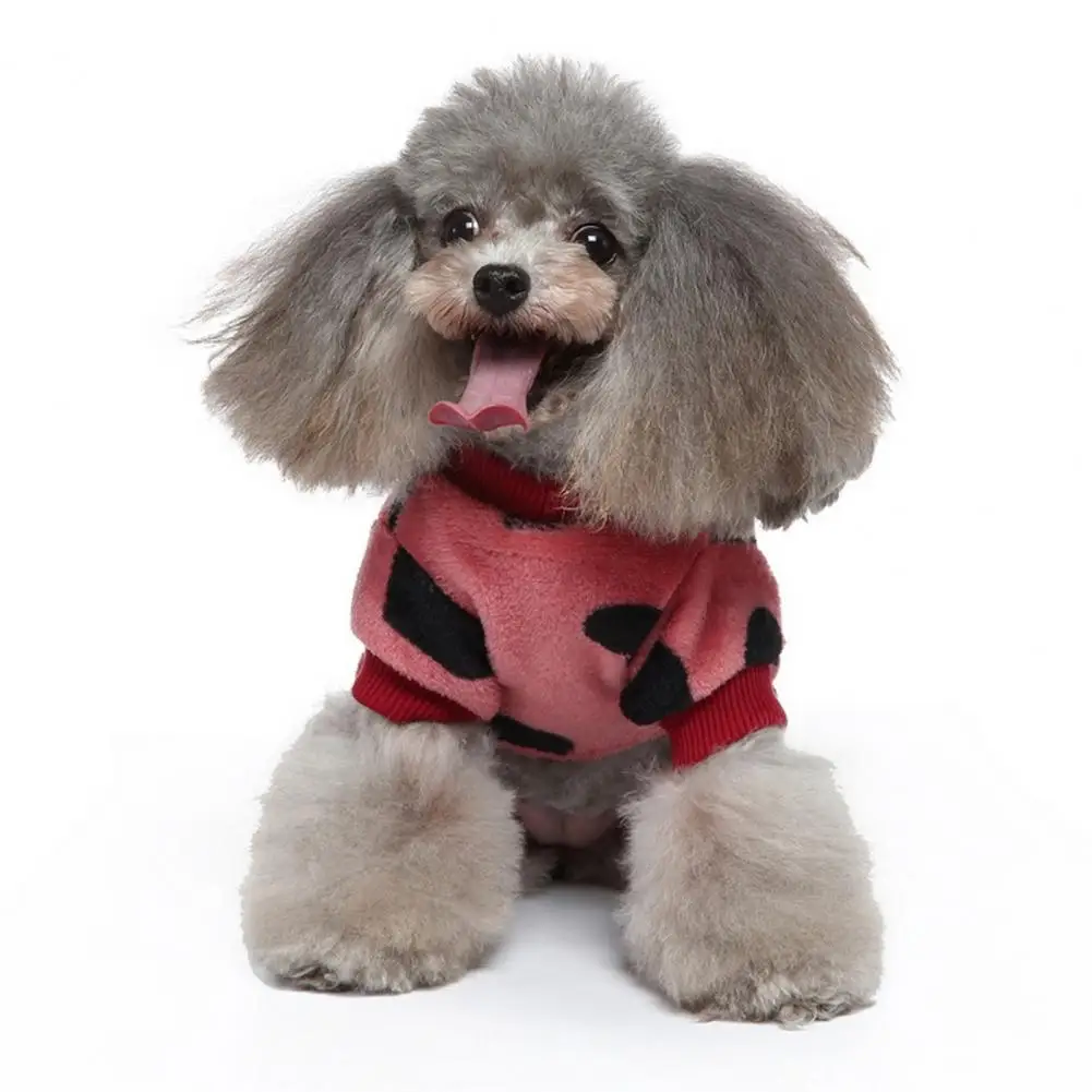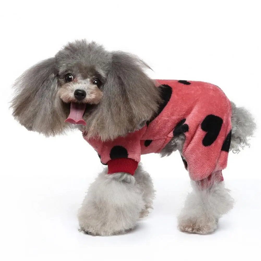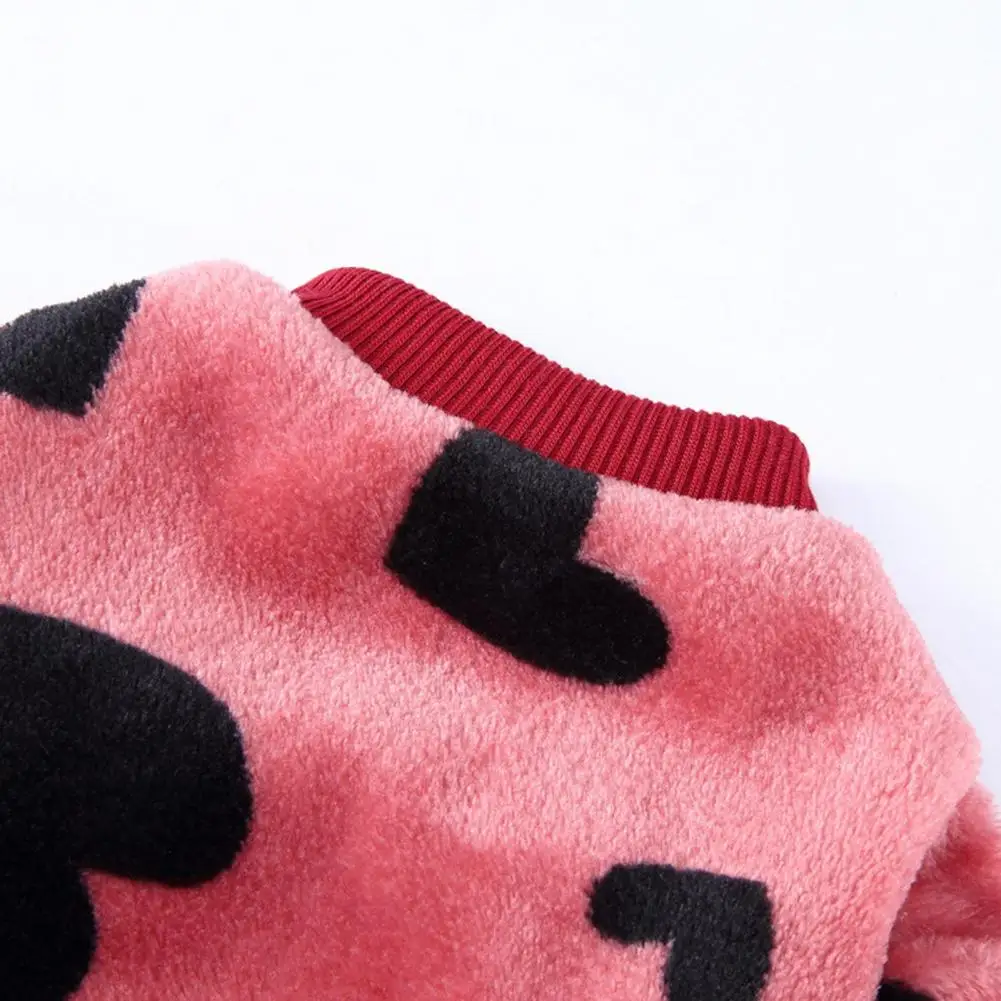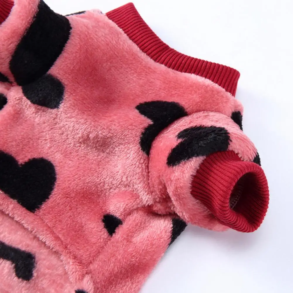 Ropa para mascotas con estilo, estampado de lunares de leopardo, patrón de corazón, cuatro patas, color brillante, felpa suave, ropa cómoda para mascotas