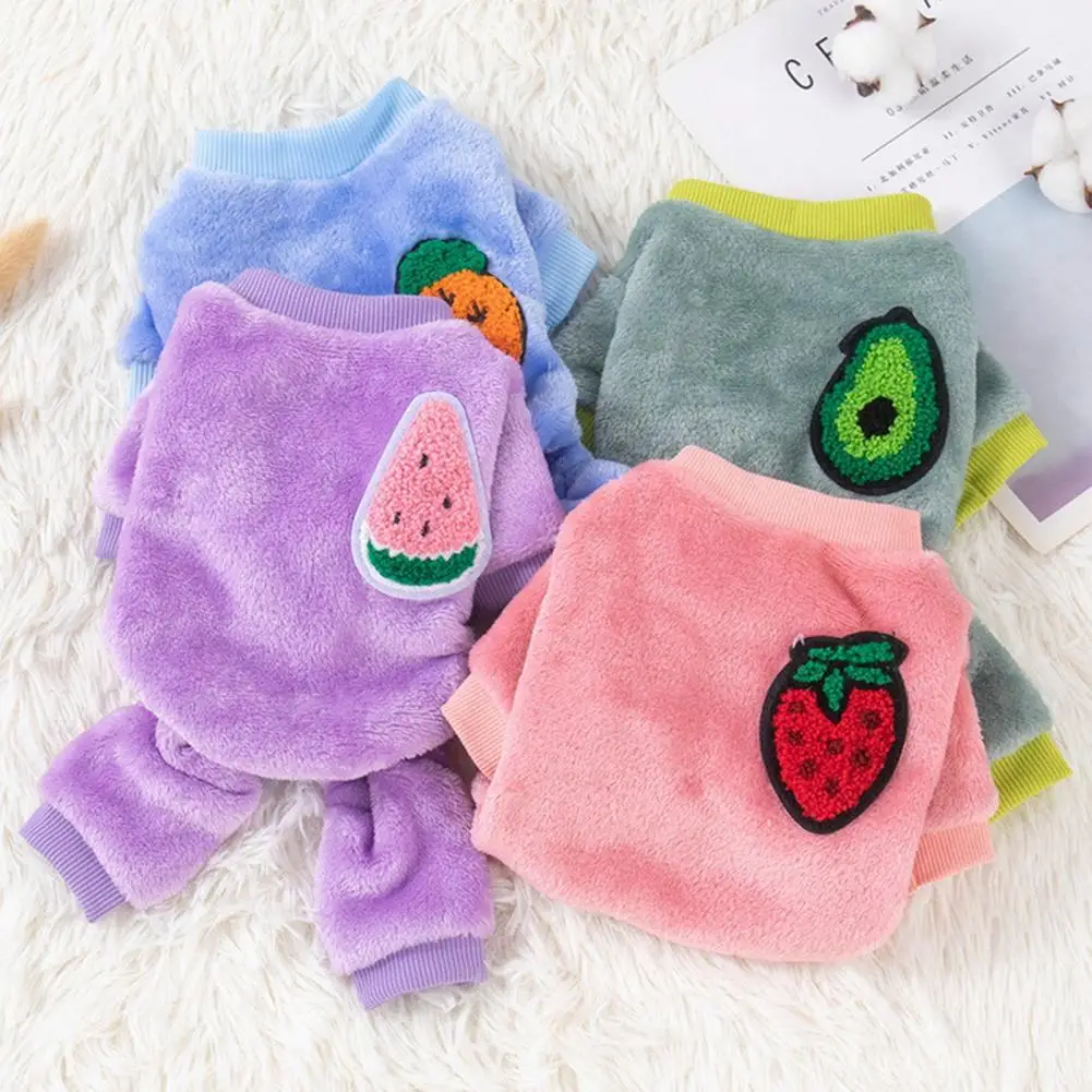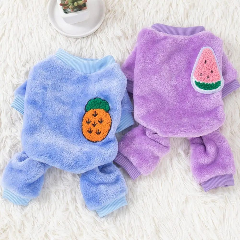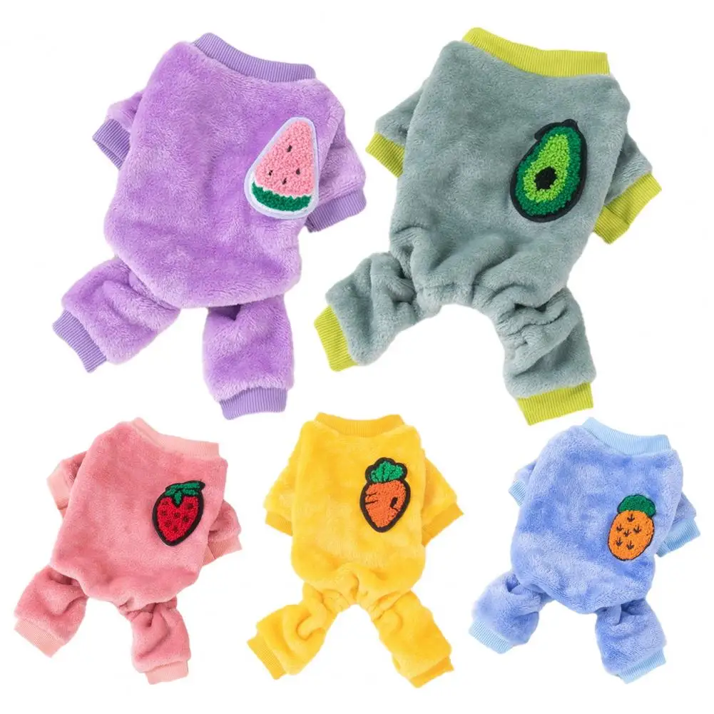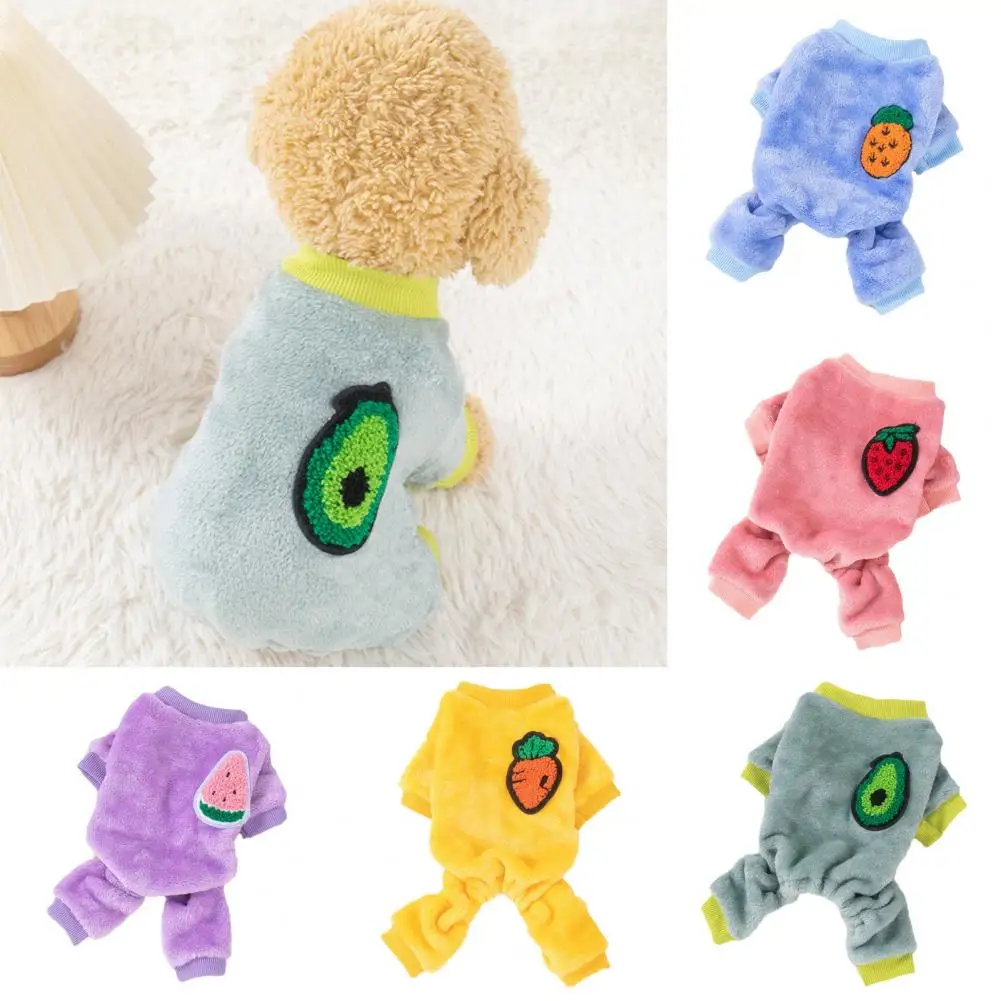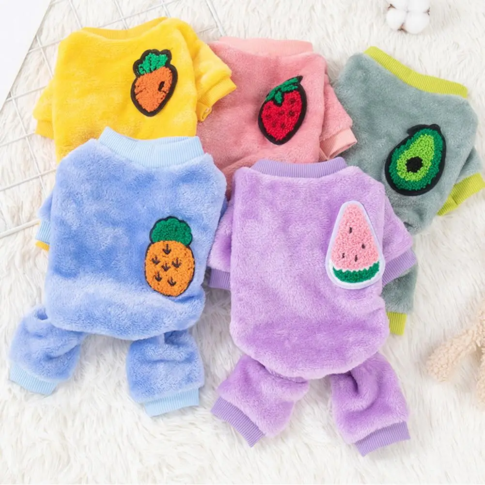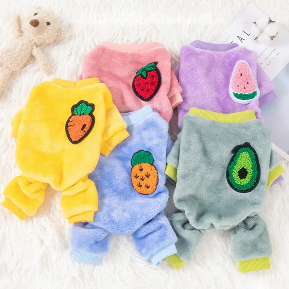 Mono de invierno con patrón de frutas para mascotas, ropa acogedora para perros de cuatro patas, monos de lana, pijamas para Chihuahua, Teddy Bichon, disfraz de gato para perros pequeños
