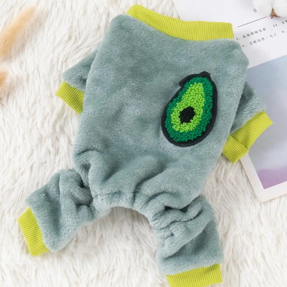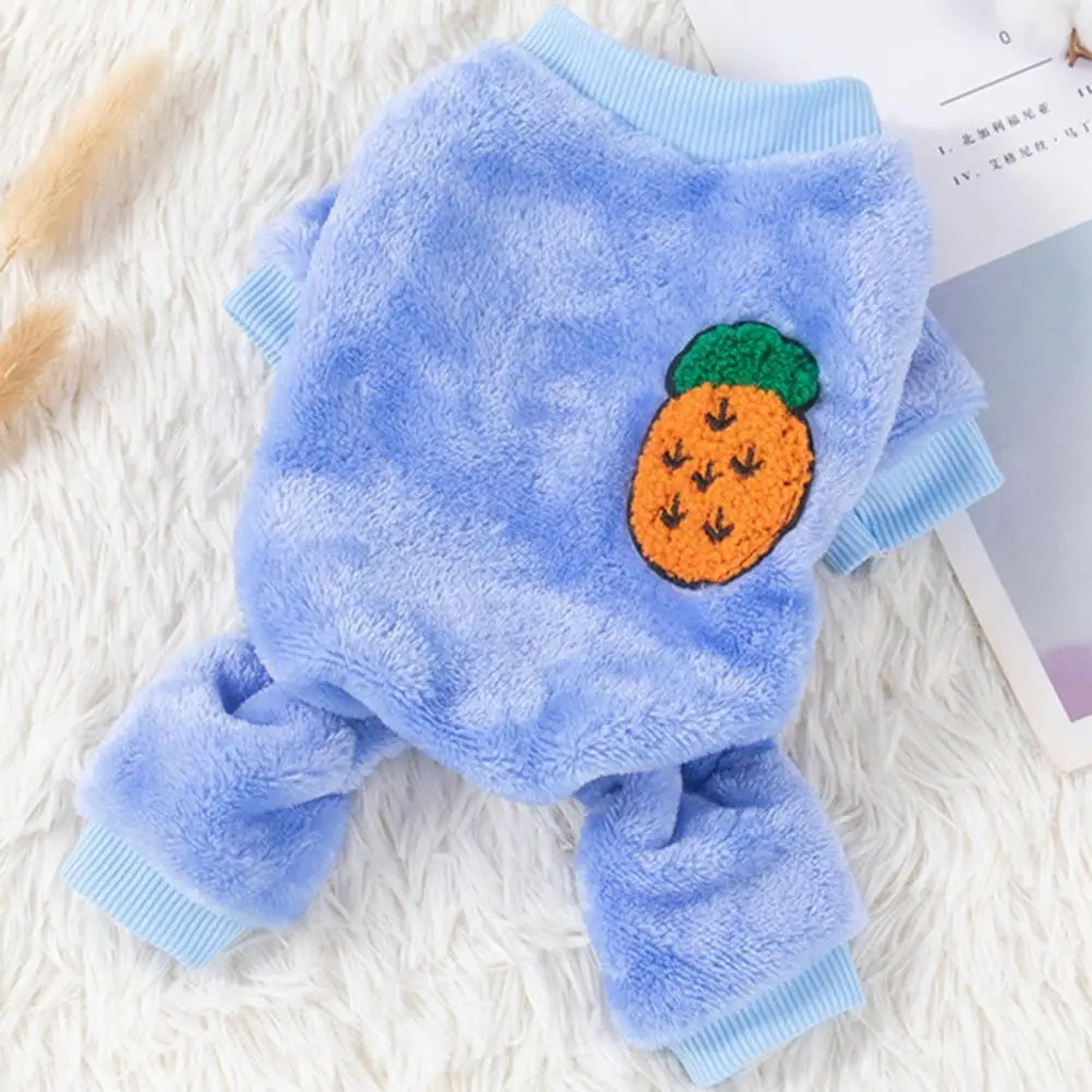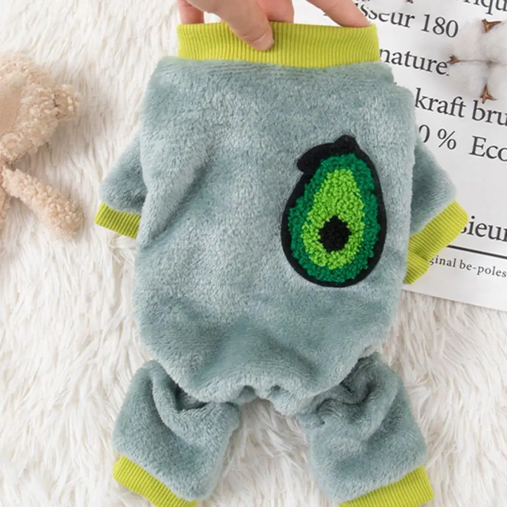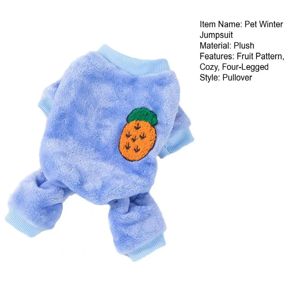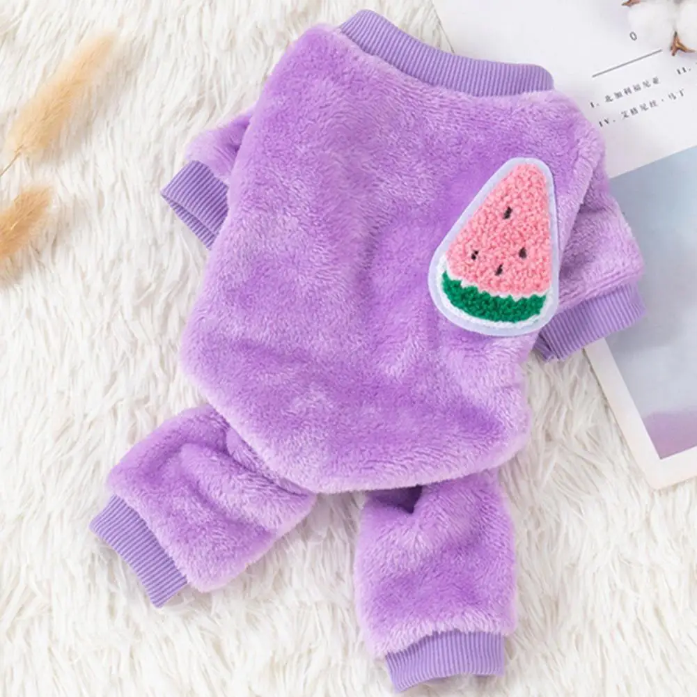 Mono de invierno con patrón de frutas para mascotas, ropa acogedora para perros de cuatro patas, monos de lana, pijamas para Chihuahua, Teddy Bichon, disfraz de gato para perros pequeños