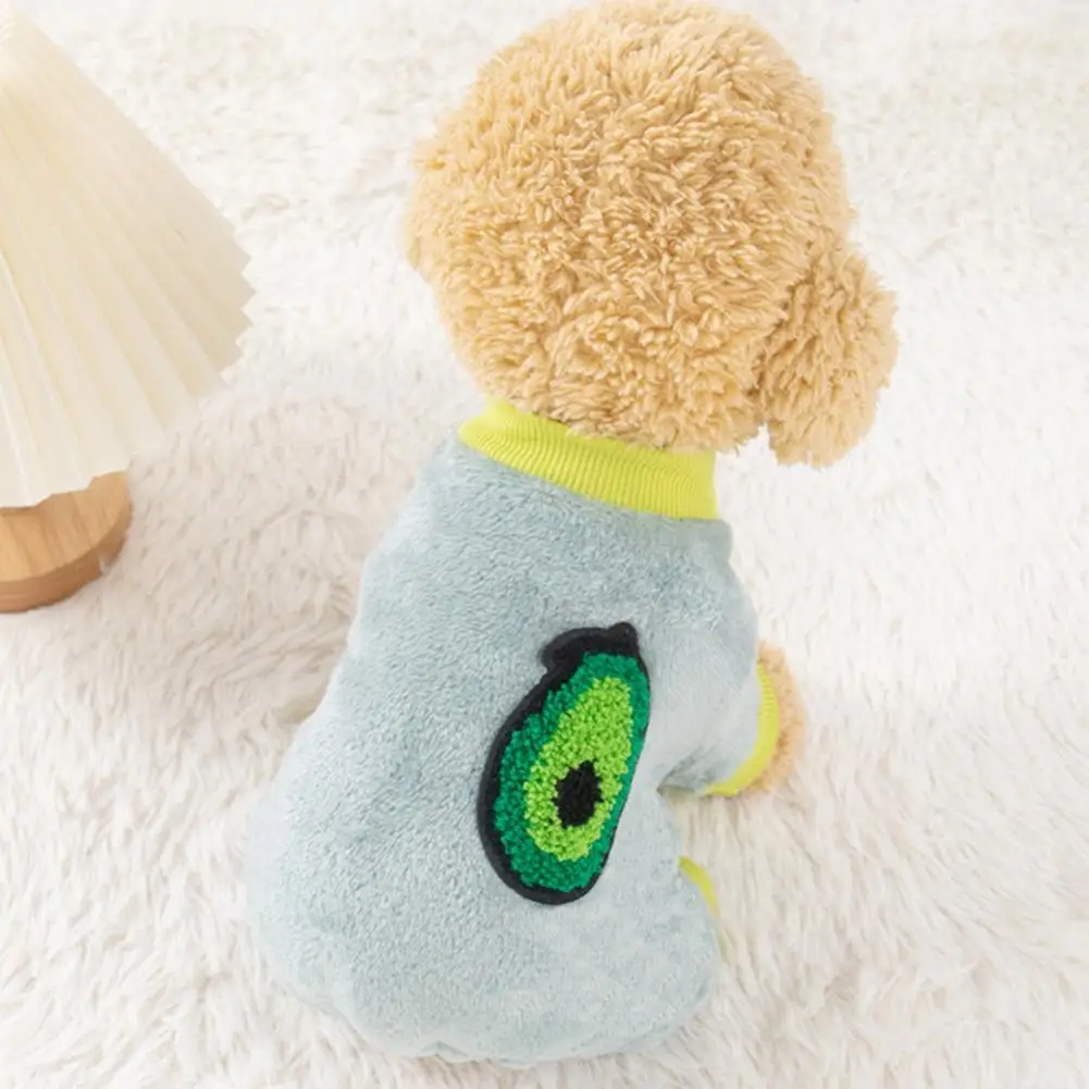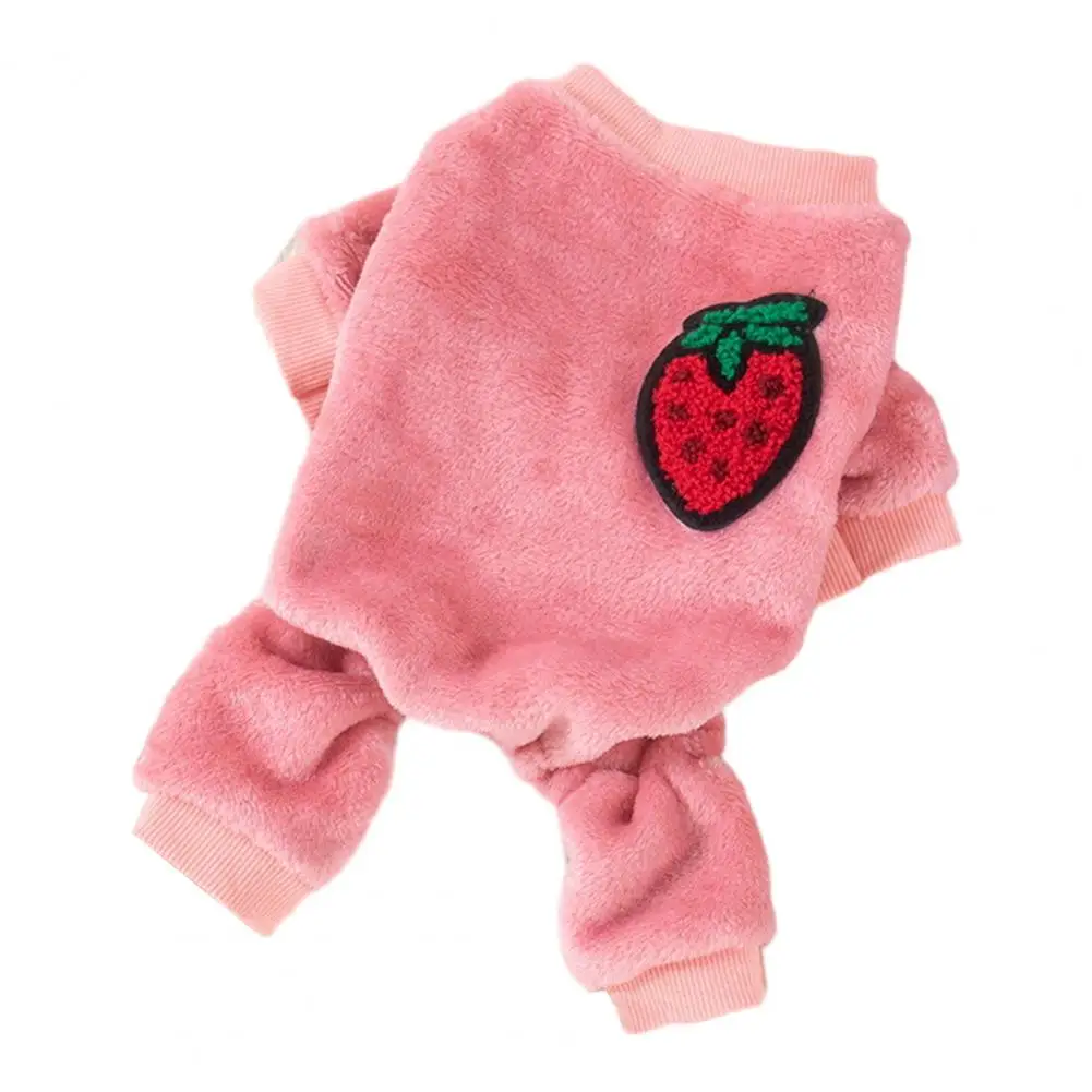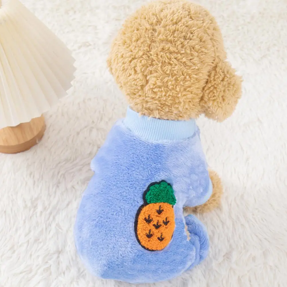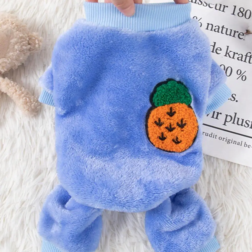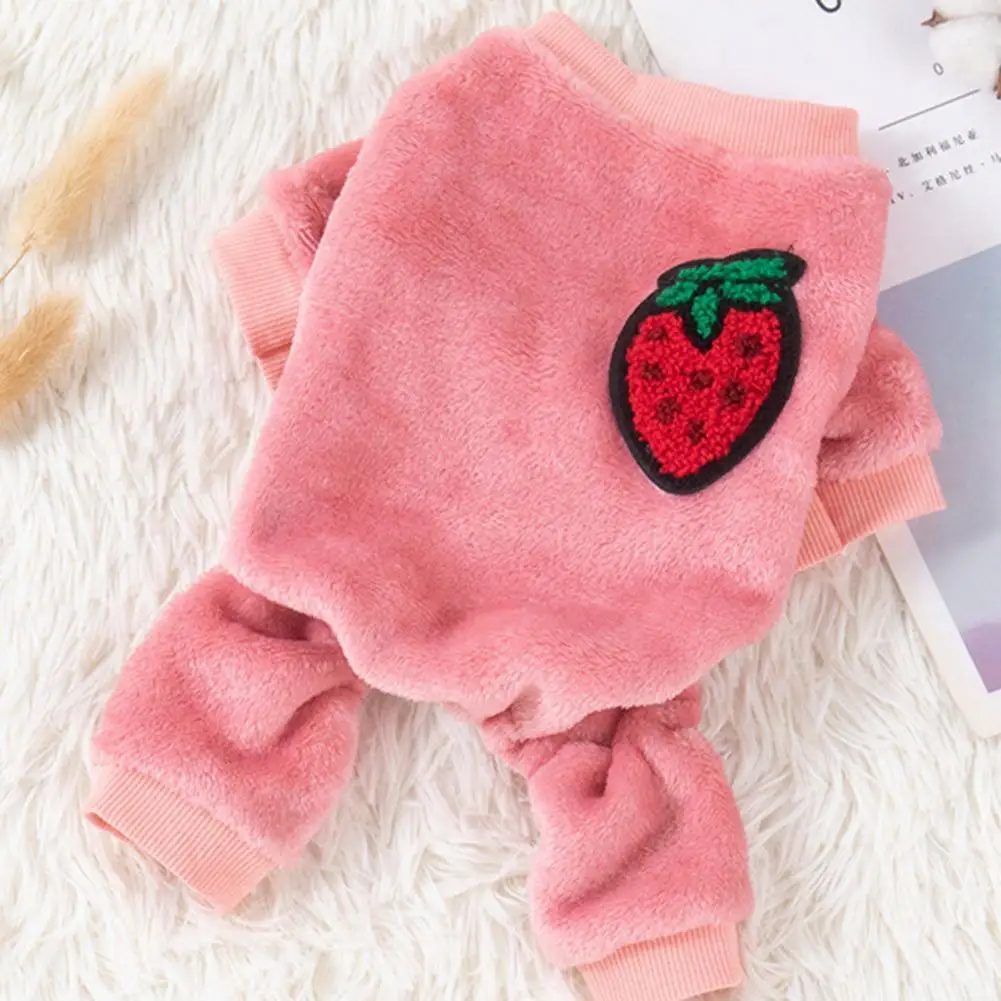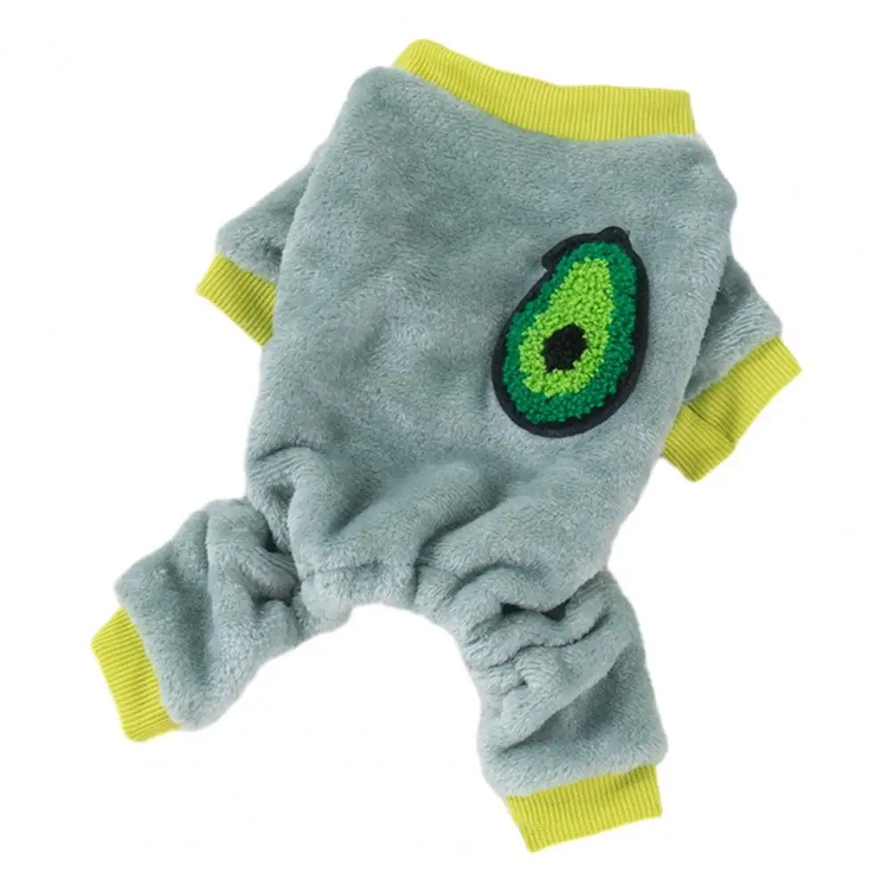 Mono de invierno con patrón de frutas para mascotas, ropa acogedora para perros de cuatro patas, monos de lana, pijamas para Chihuahua, Teddy Bichon, disfraz de gato para perros pequeños