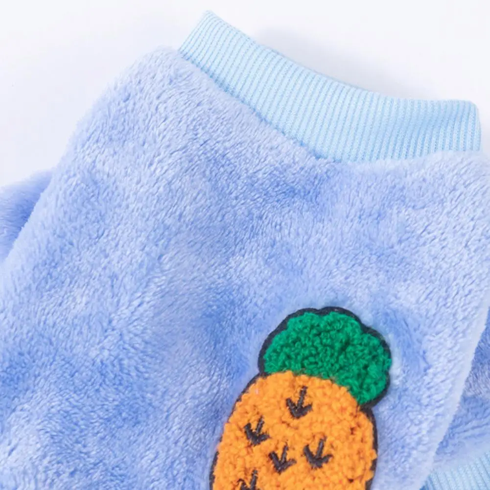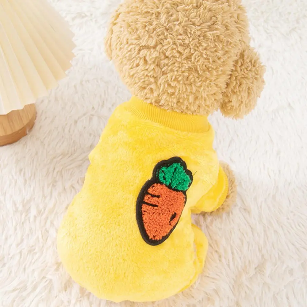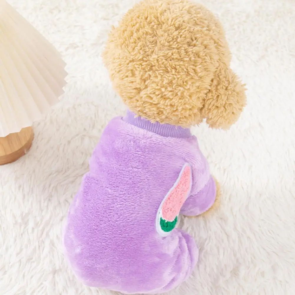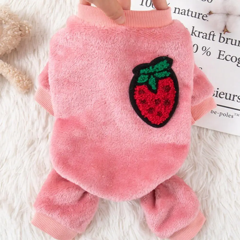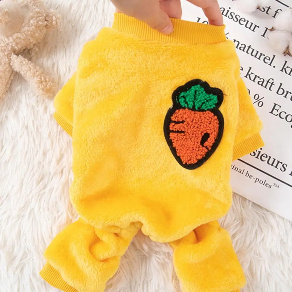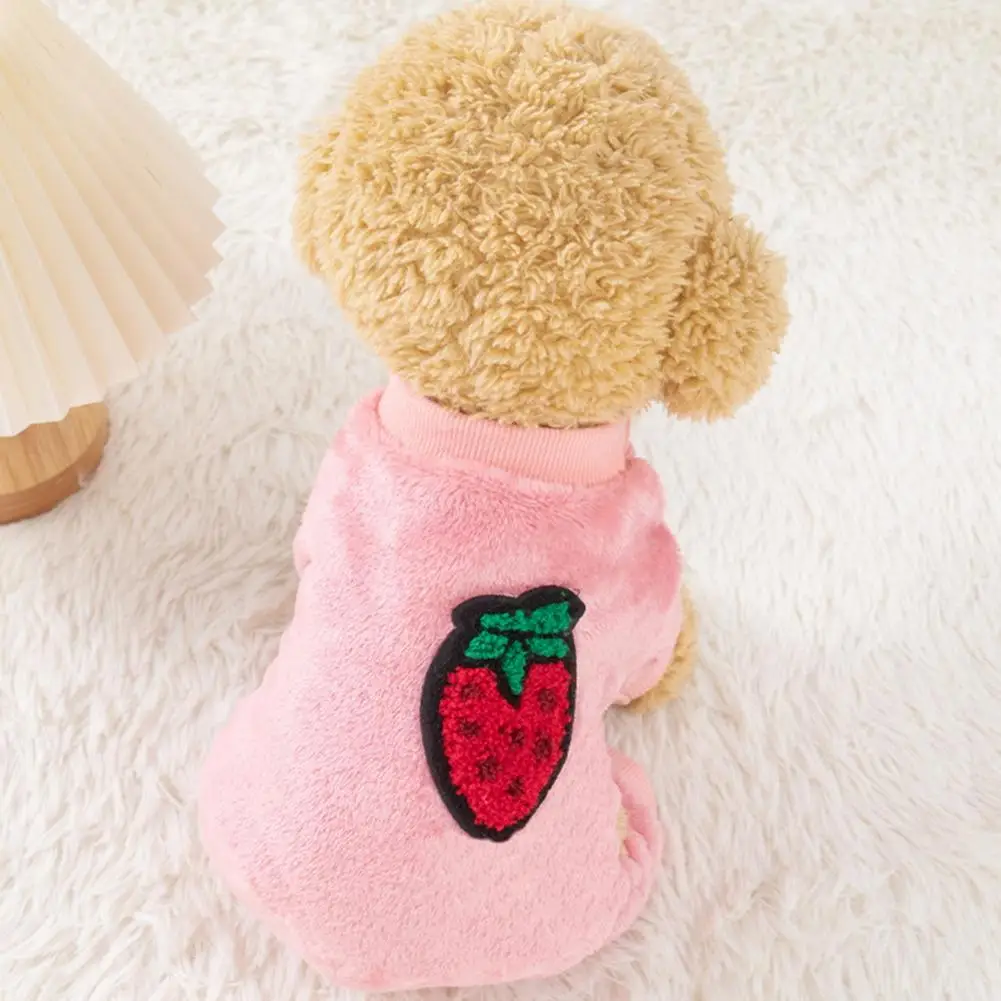 Mono de invierno con patrón de frutas para mascotas, ropa acogedora para perros de cuatro patas, monos de lana, pijamas para Chihuahua, Teddy Bichon, disfraz de gato para perros pequeños