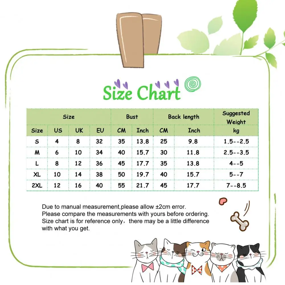 Tamaño: 2XL, busto: 55cm/21,7 ", longitud de espalda: 45cm/17,7", peso recomendado: 7kg-8,5 kg (aprox.)