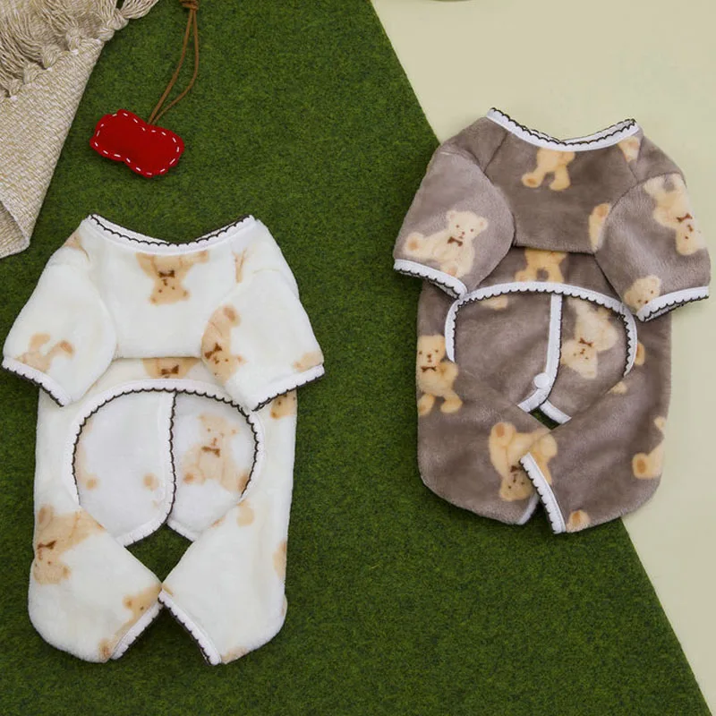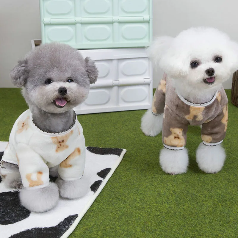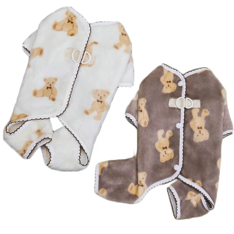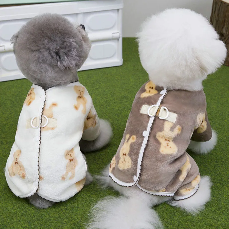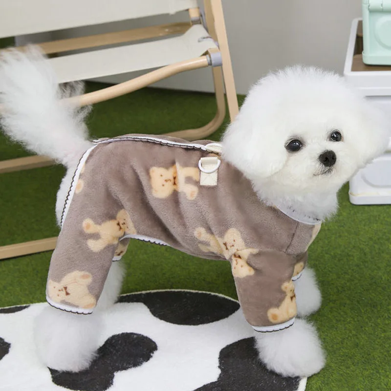 Monos de lana, pijamas, ropa cálida de invierno, ropa para mascotas de color marrón y blanco para perros pequeños, Chihuahua, Dachshund, cachorro, mono, disfraz XS