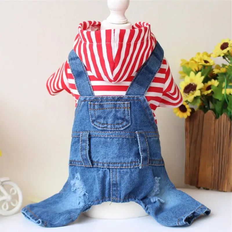 Dog Denim Jumpsuits Striped Puppy Jean Jacket Yorkie Overalls for French Bulldog Coat Pet Clothes for Small Medium Dogs Cats
