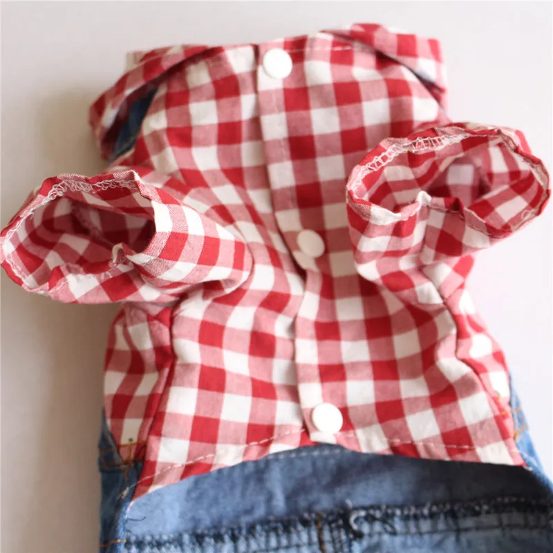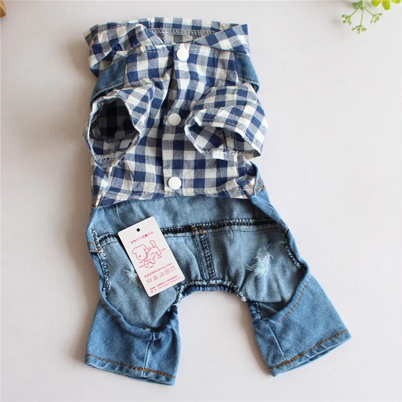 Monos de mezclilla para perros, pantalones vaqueros con camisa a cuadros para cachorros, monos de Bulldog Francés Yorkie para perros, ropa para mascotas para perros de razas pequeñas y medianas
