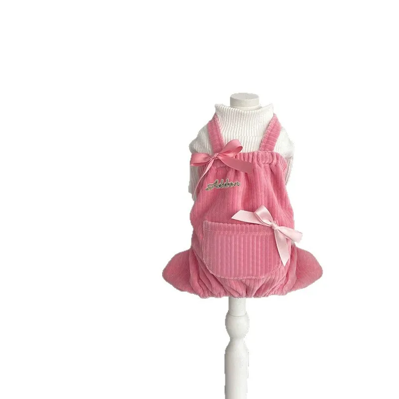 Monos de pana para mascotas, mono con lazo de mariposa, ropa de dos patas para cachorros de otoño e invierno, pantalones de cuatro patas para gato de peluche