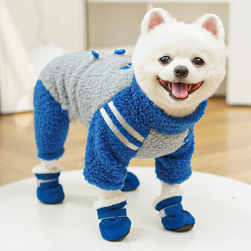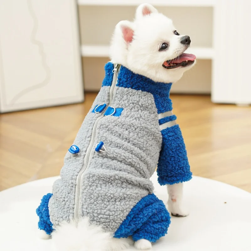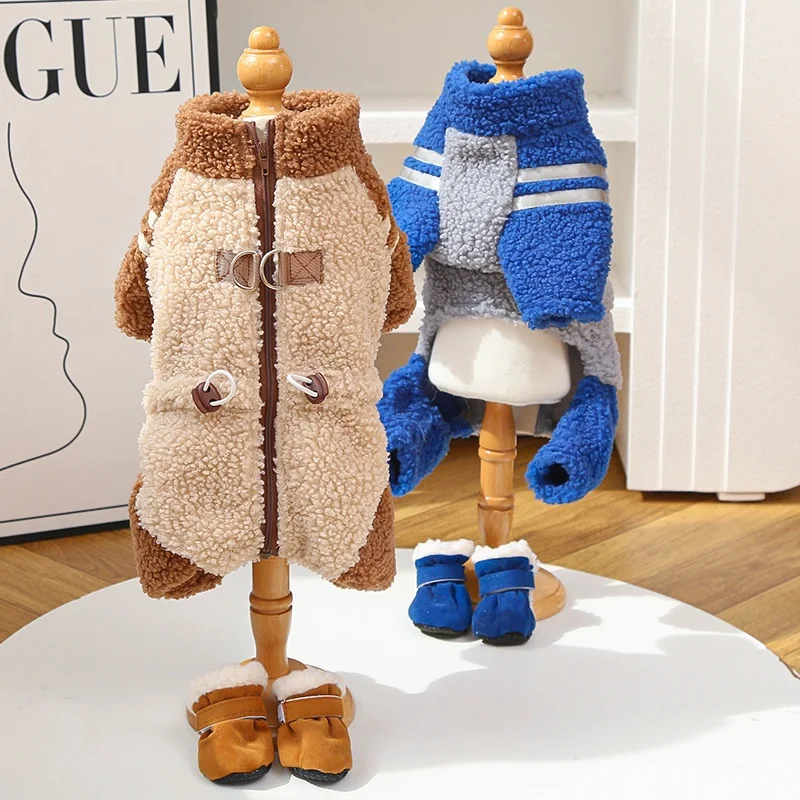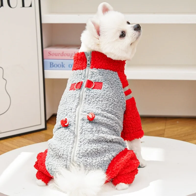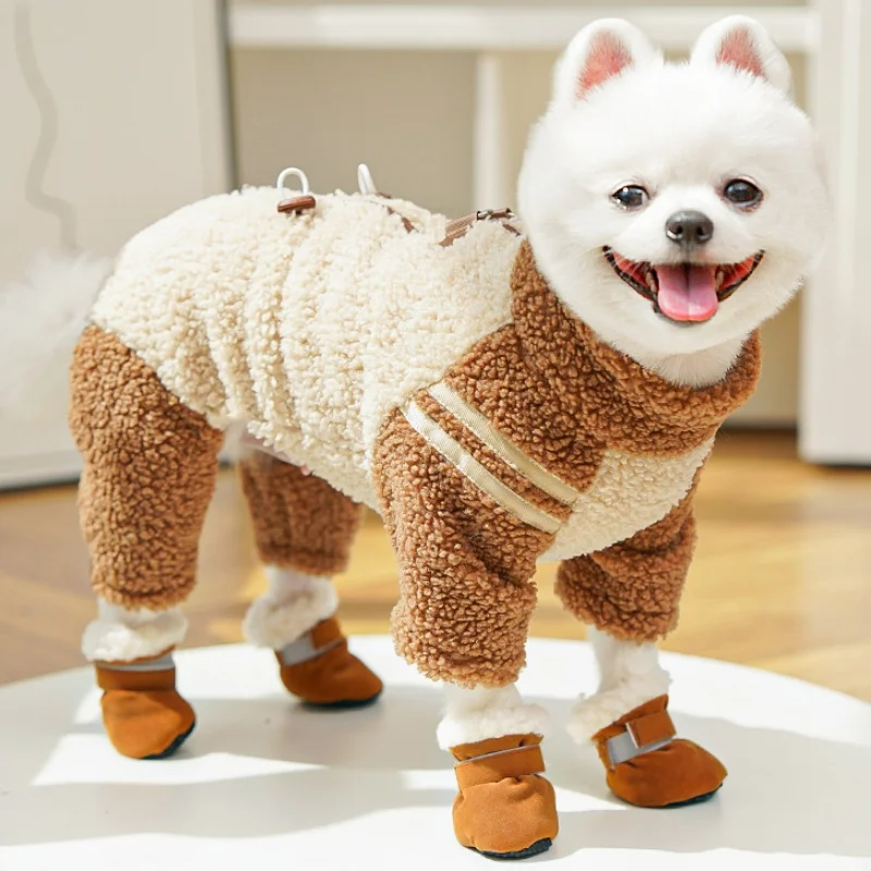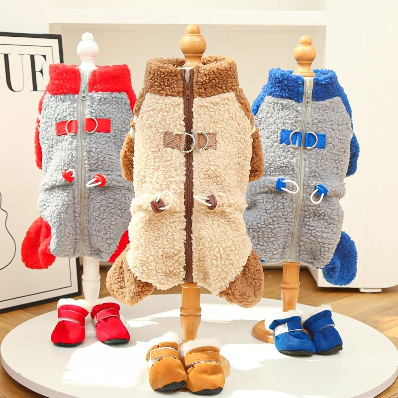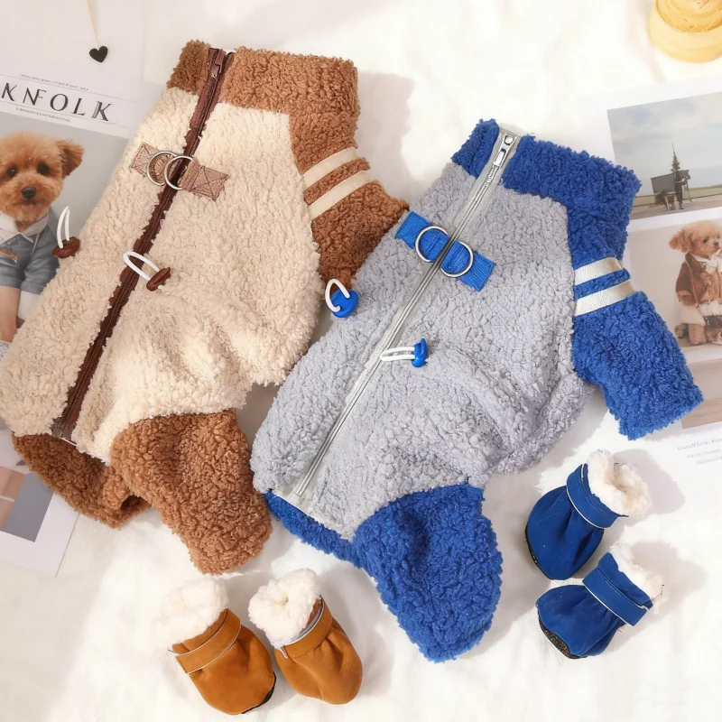 Monos de felpa a la moda para perros, chaqueta cálida de invierno, ropa para perros, peleles gruesos y suaves para cachorros, monos bonitos y sólidos para gatos, suministros para mascotas
