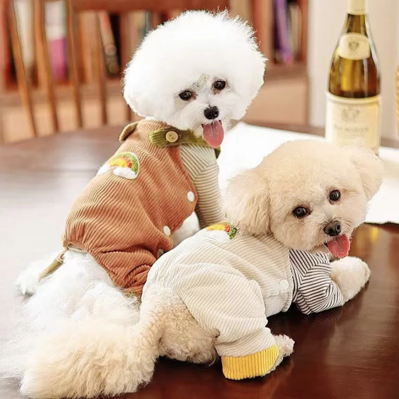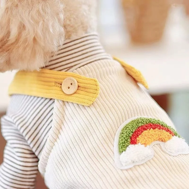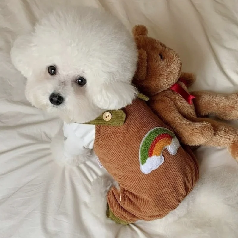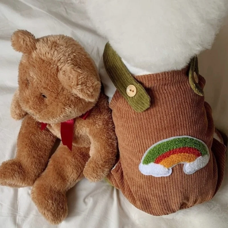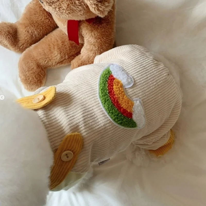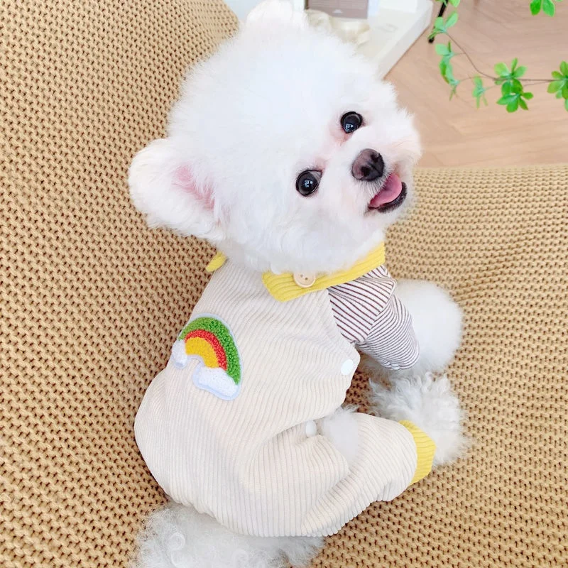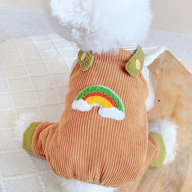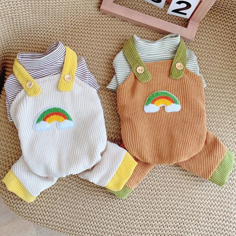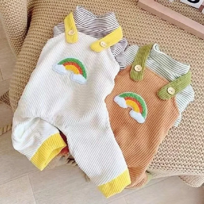 Monos para perros a la moda, ropa suave y bonita para perros, pijamas de felpa para cachorros de otoño, monos con estampado de arcoíris para gatos, peleles para mascotas, monos para caniche