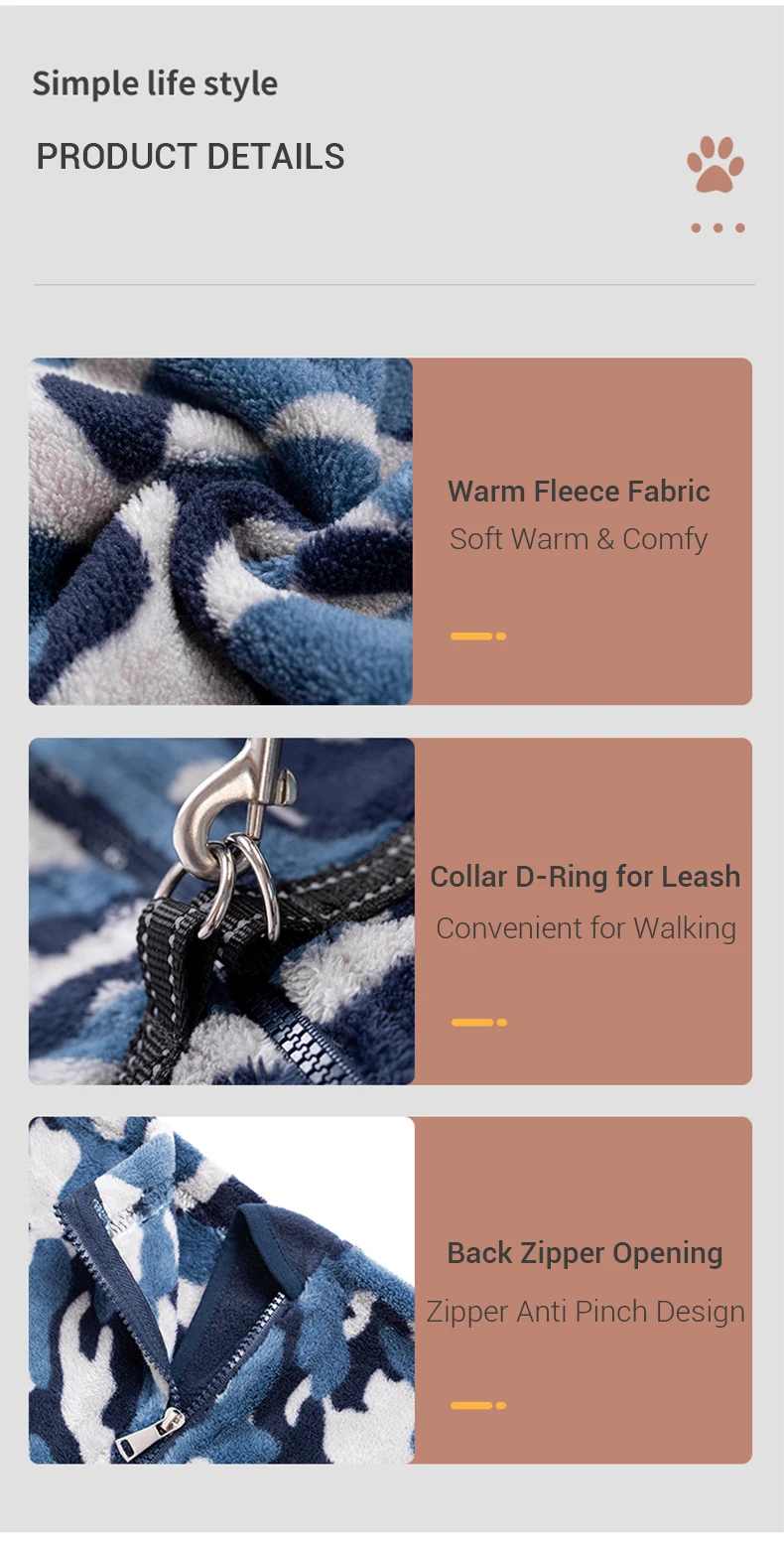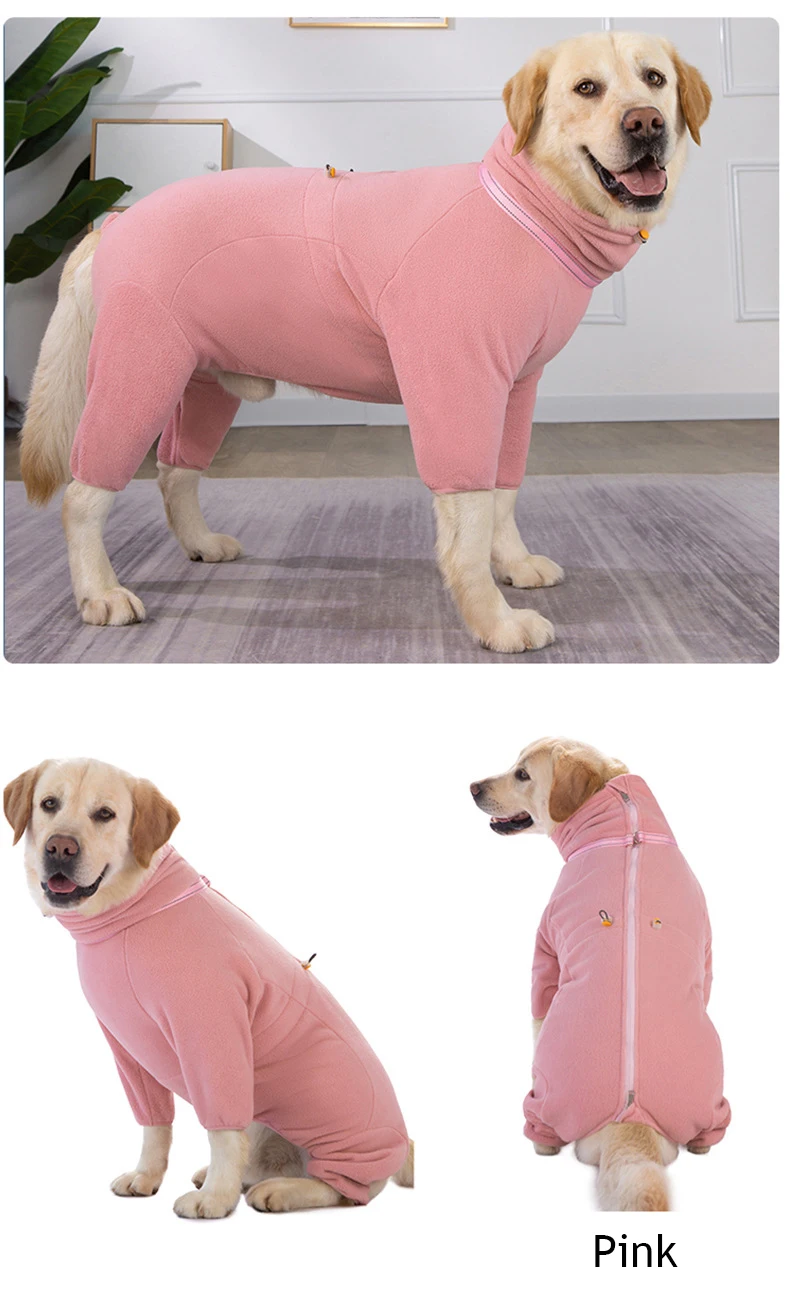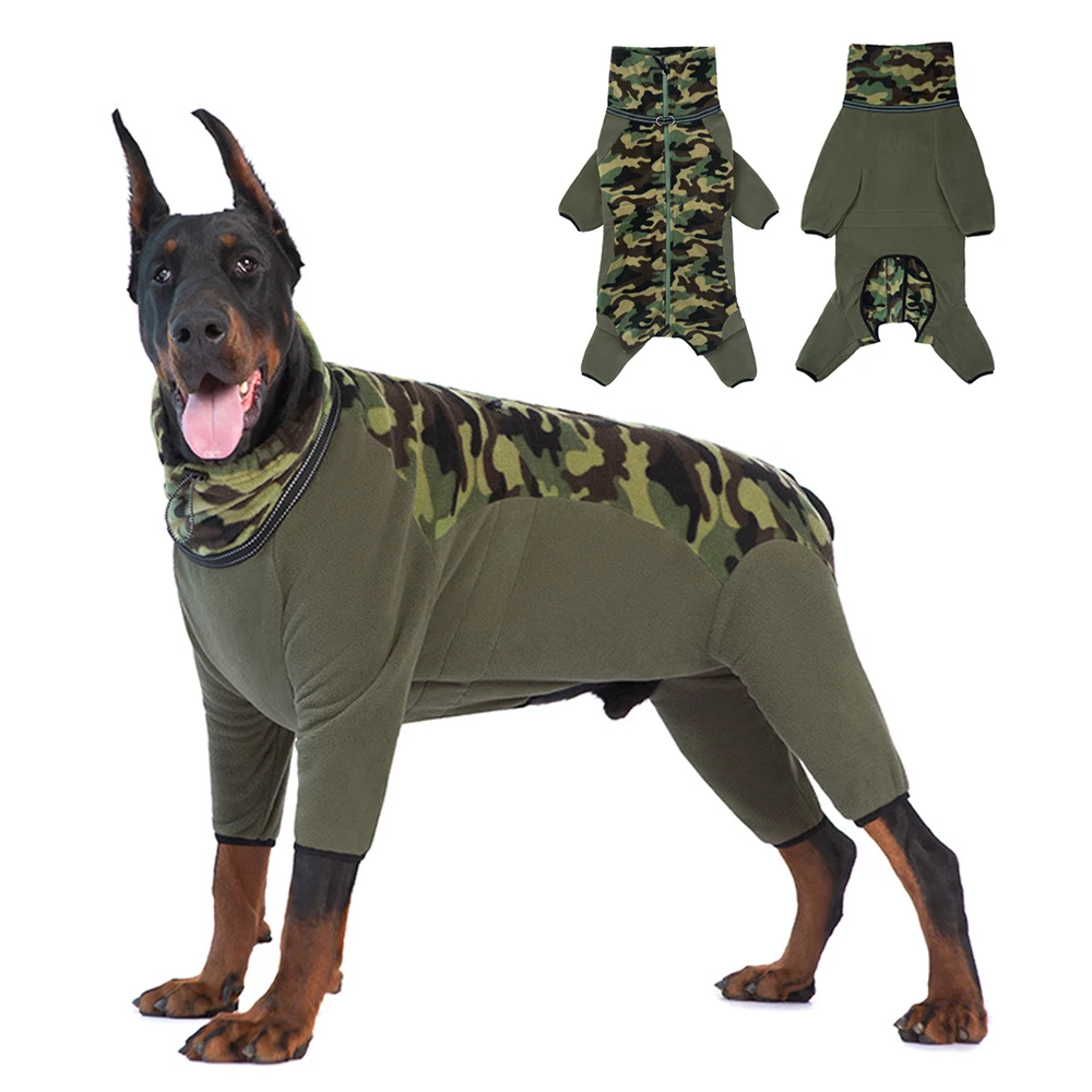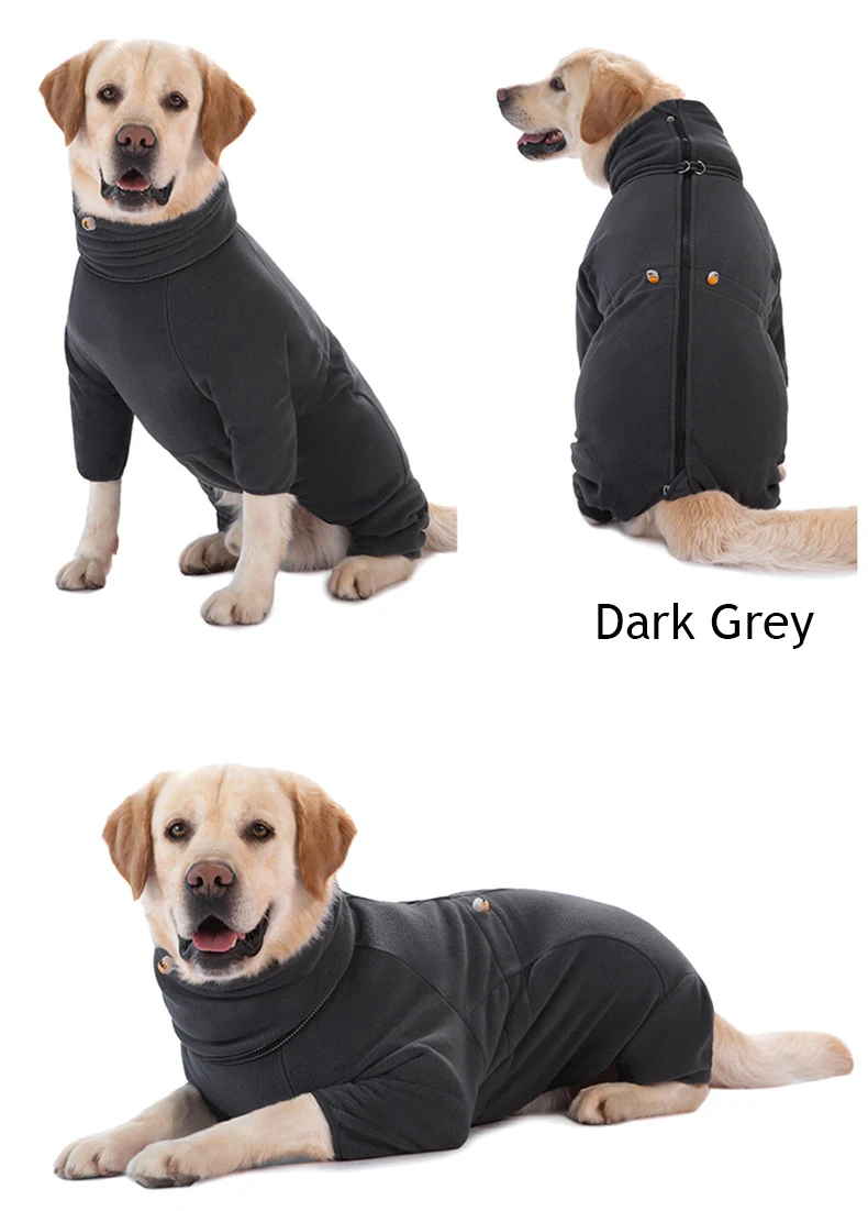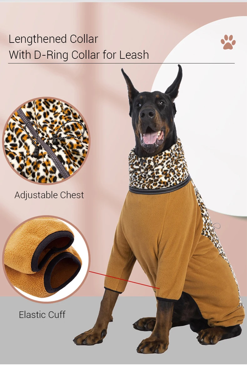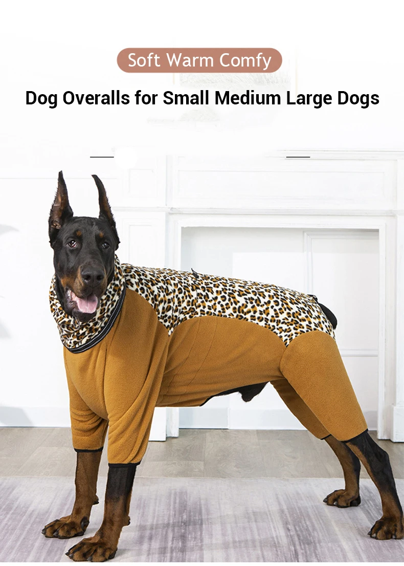 Monos para perros, mono de lana suave y cálido de invierno para perros pequeños, medianos y grandes, abrigo grueso para mascotas con cuello reflectante de 4 patas