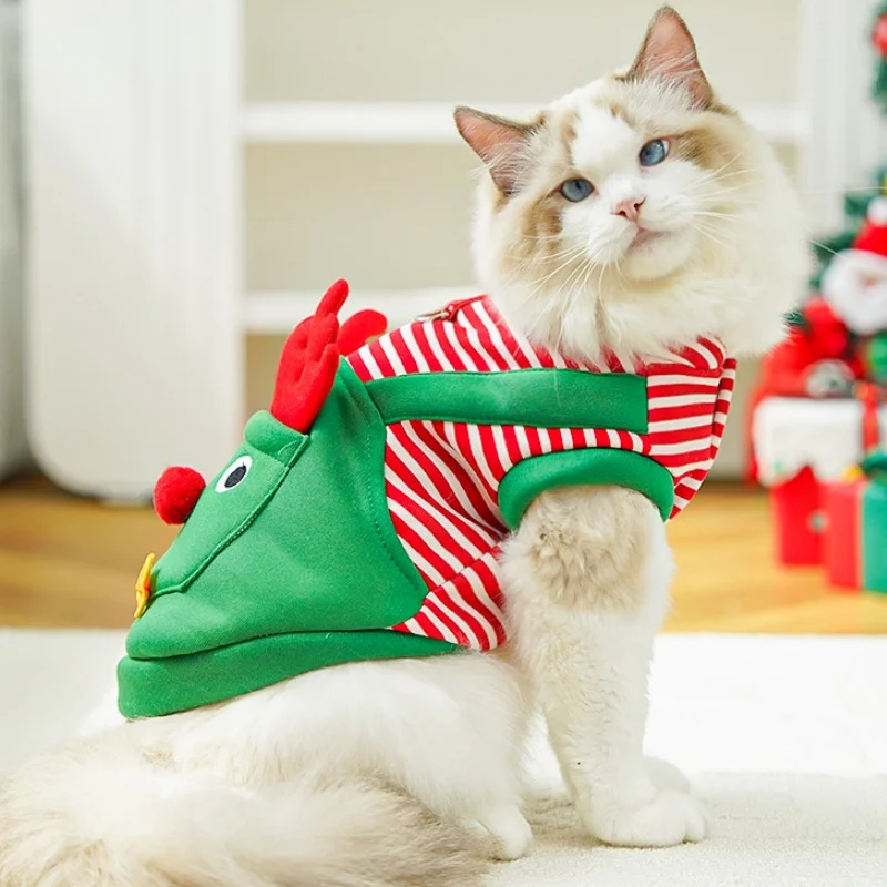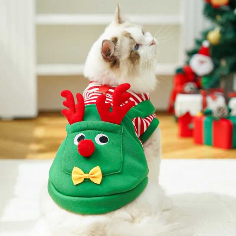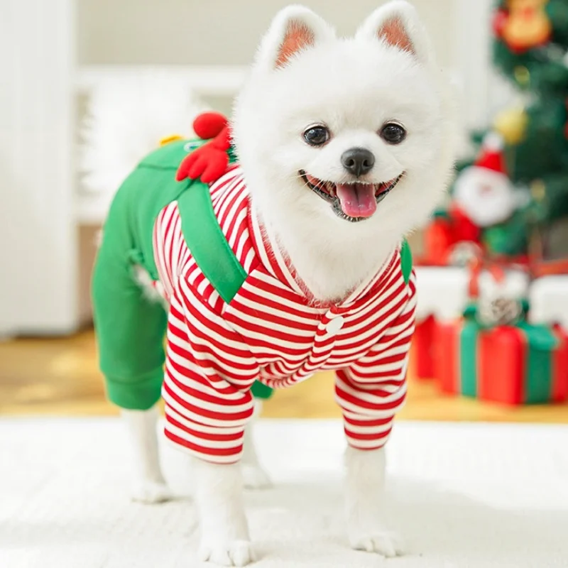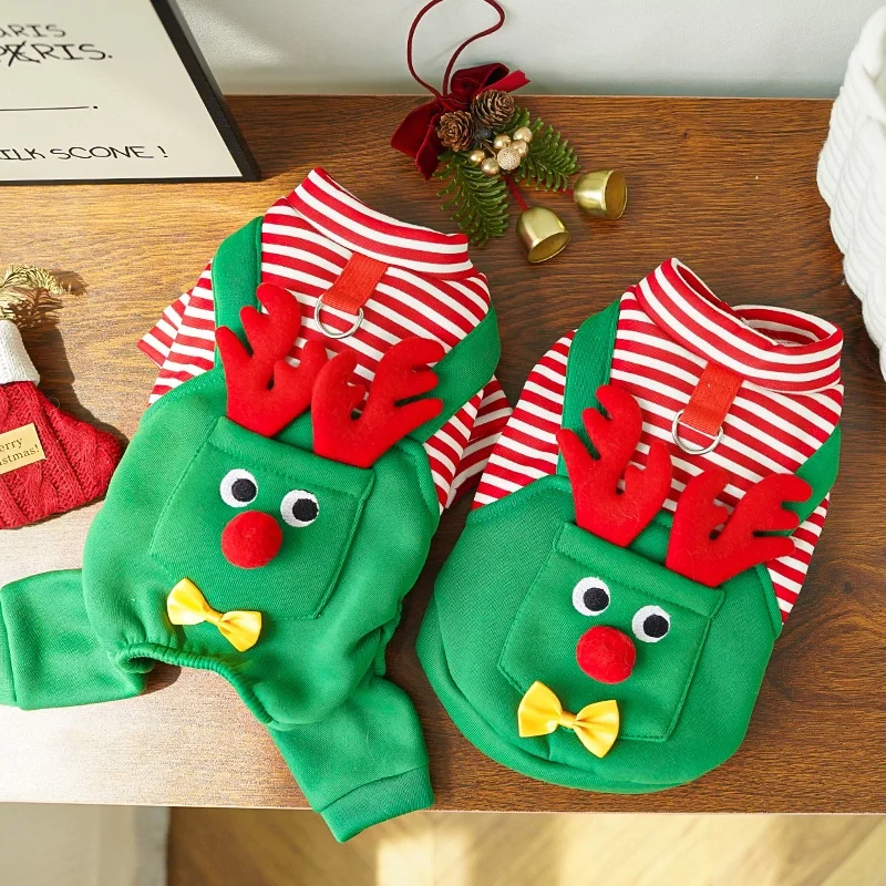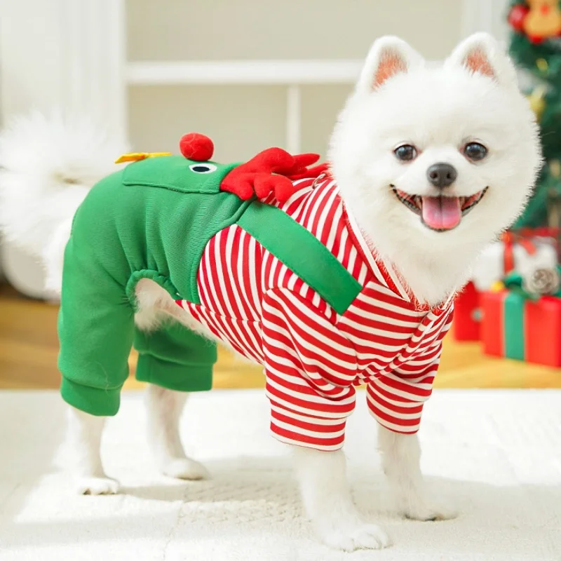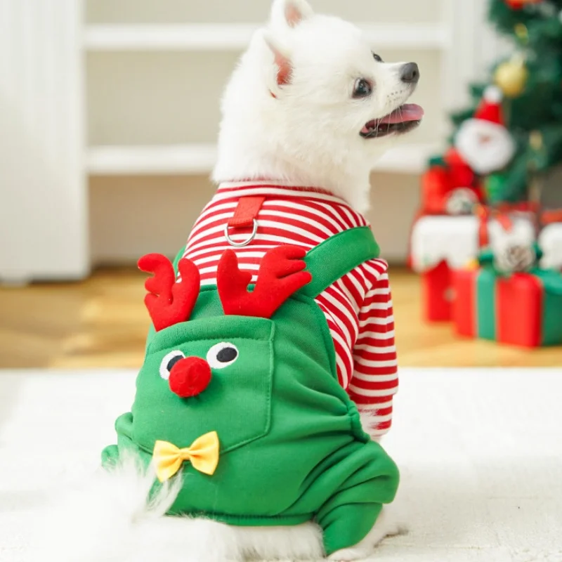 Monos a rayas para perros, chaqueta, ropa cálida de invierno para perros, chaleco navideño de alce para cachorros, abrigo, chaqueta suave y bonita para gatos, abrigo, ropa para mascotas