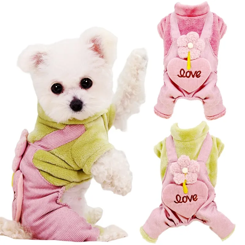 Monos suaves y cálidos para perros, abrigo para perros pequeños, patrón de flores, pijamas para cachorros, monos de lujo para gatos, chaqueta para mascotas, abrigo, ropa para perros