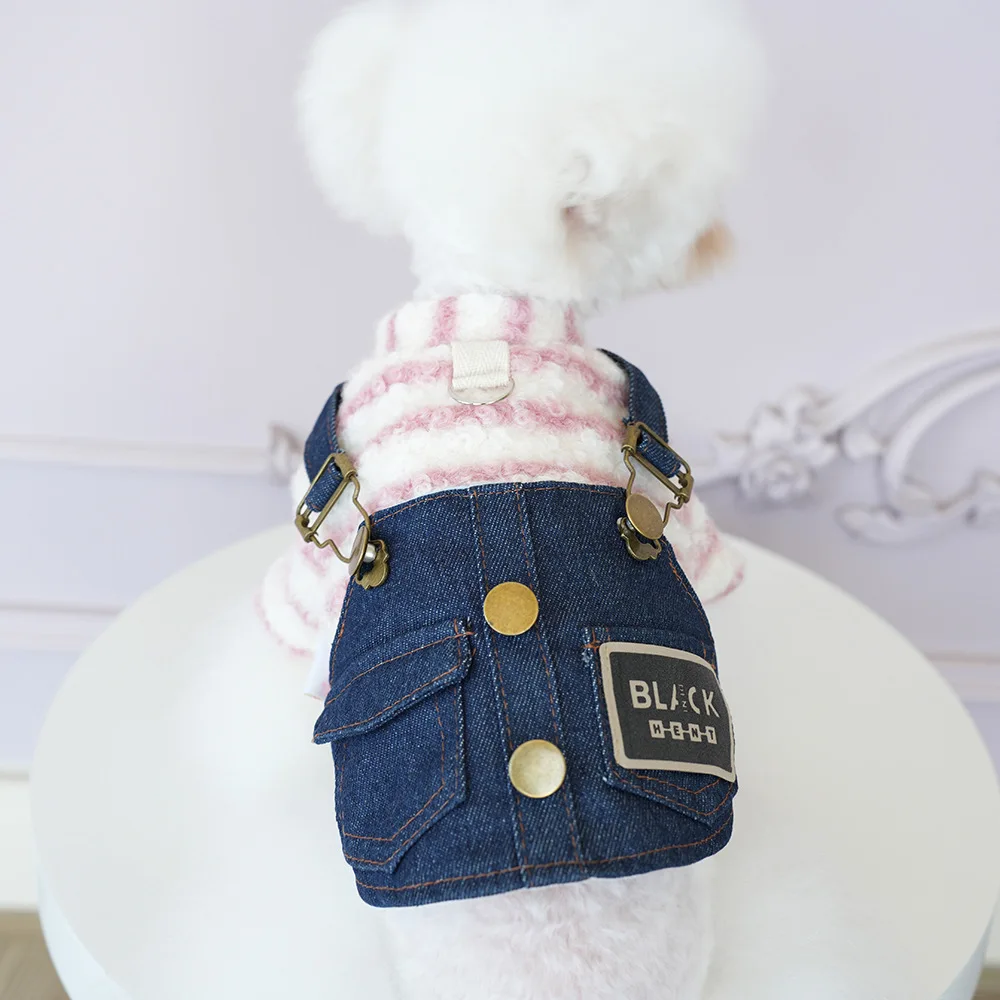 Monos vaqueros de otoño e invierno para mascotas, mono de invierno para perros de peluche, ropa para parejas de cuatro patas, chaqueta, ropa para cachorros pequeños