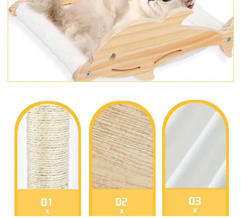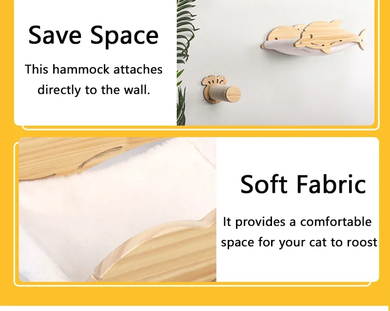La hamaca para gatos está hecha de madera de bambú, resistente y duradera. Puede estar seguro de que su gato está seguro jugando.