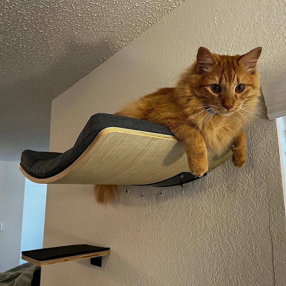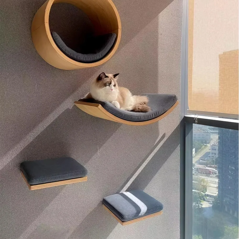A los gatos les encanta escalar y estar en lugares altos.Los estantes para gatos montados en la pared se adaptan a sus instintos de explorar, observar y buscar una sensación de seguridad, aliviar el estrés y el aburrimiento y mantener su cuerpo y mente activos.