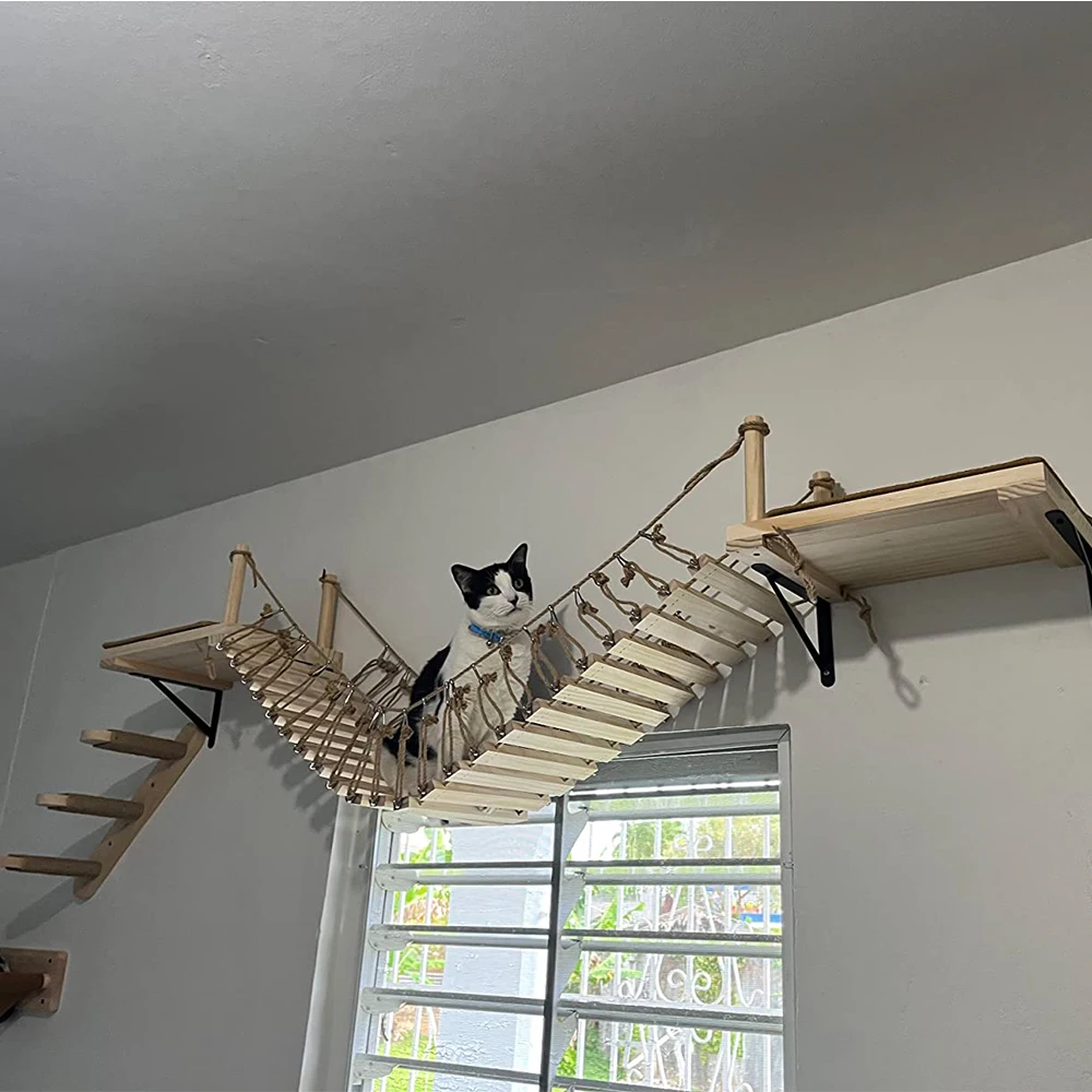 Muebles para mascotas montados en la pared, escalera de escalada para gatos, hamaca de pared para mascotas, actividades en interiores, poste rascador para gatos de Sisal