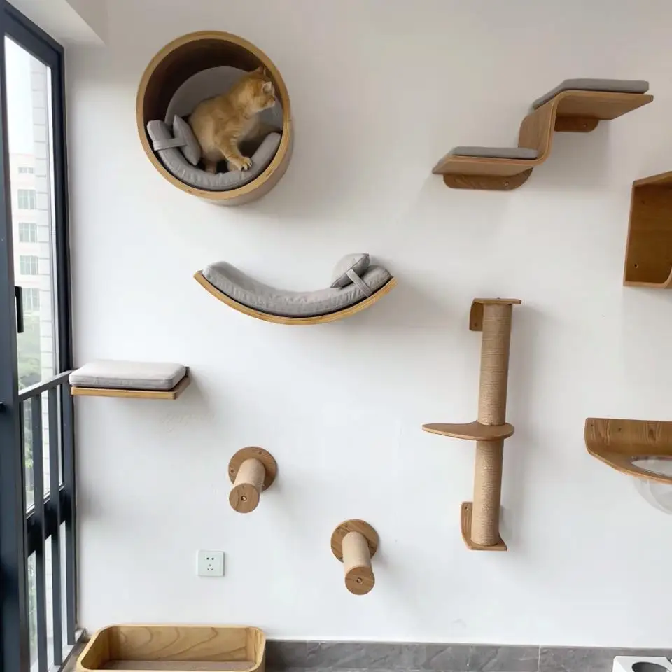 Muebles montados en la pared para gatos, estantes de escalada para gatos, poste rascador, escalera, percha para gatos, casa de árbol de madera para gatos, juego para dormir