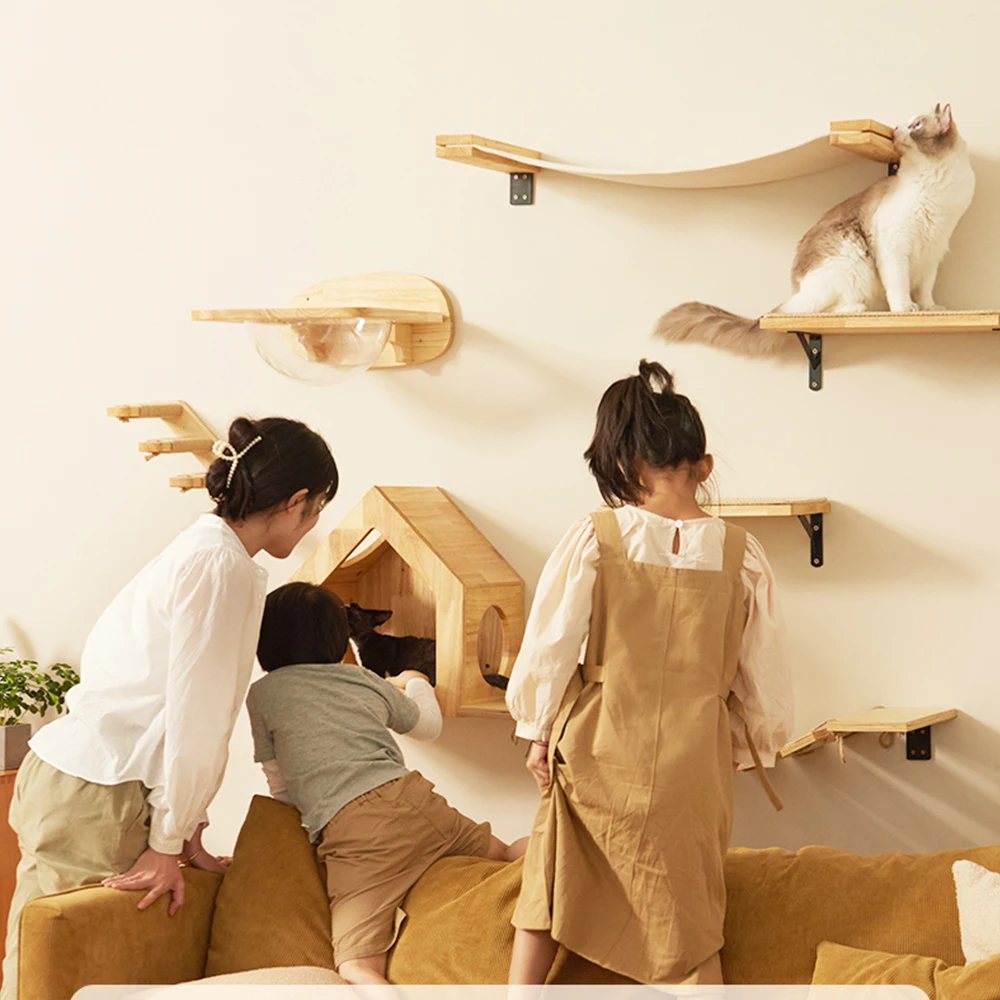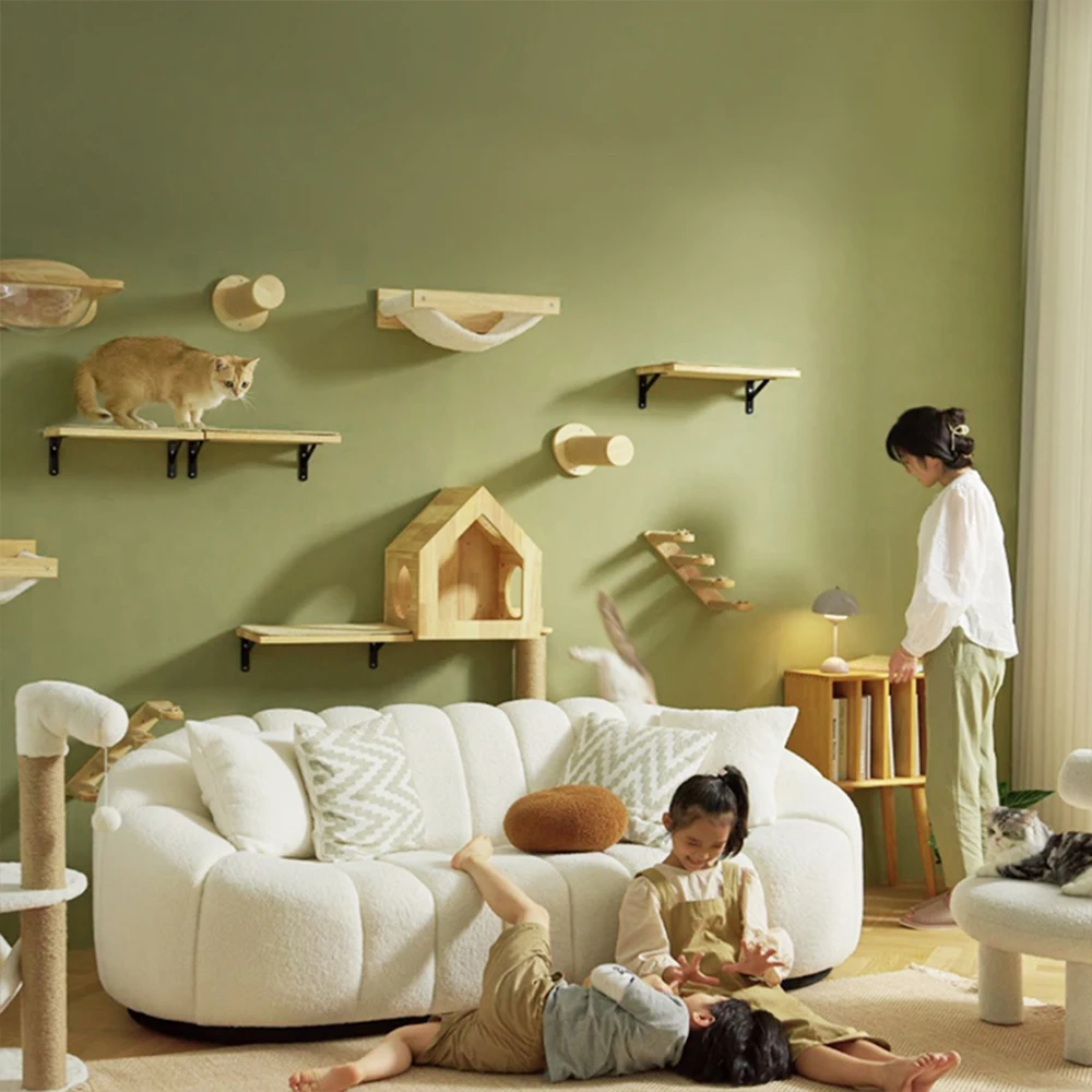 Los estantes de pared para gatos se adaptan al hábito de los gatos de escalar, aumentan el ejercicio y reduciendo la posibilidad de obesidad, lo que es bueno para la salud.Además, le da a los gatos espacio para escalar y evitar estropear la casa.