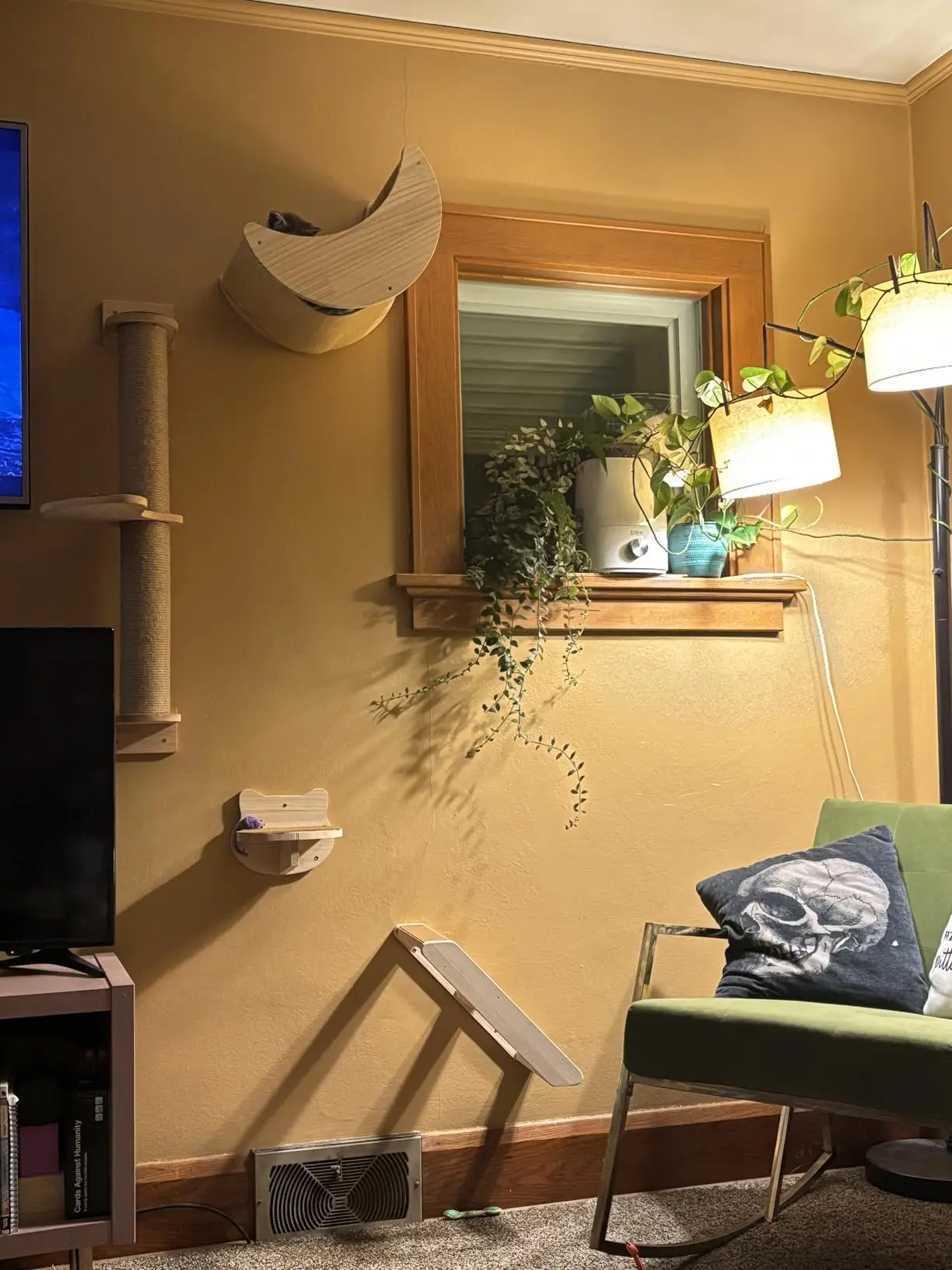 Los estantes de pared para gatos se adaptan al hábito de los gatos de escalar, aumentan el ejercicio y reduciendo la posibilidad de obesidad, lo que es bueno para la salud.Además, le da a los gatos espacio para escalar y evitar estropear la casa.