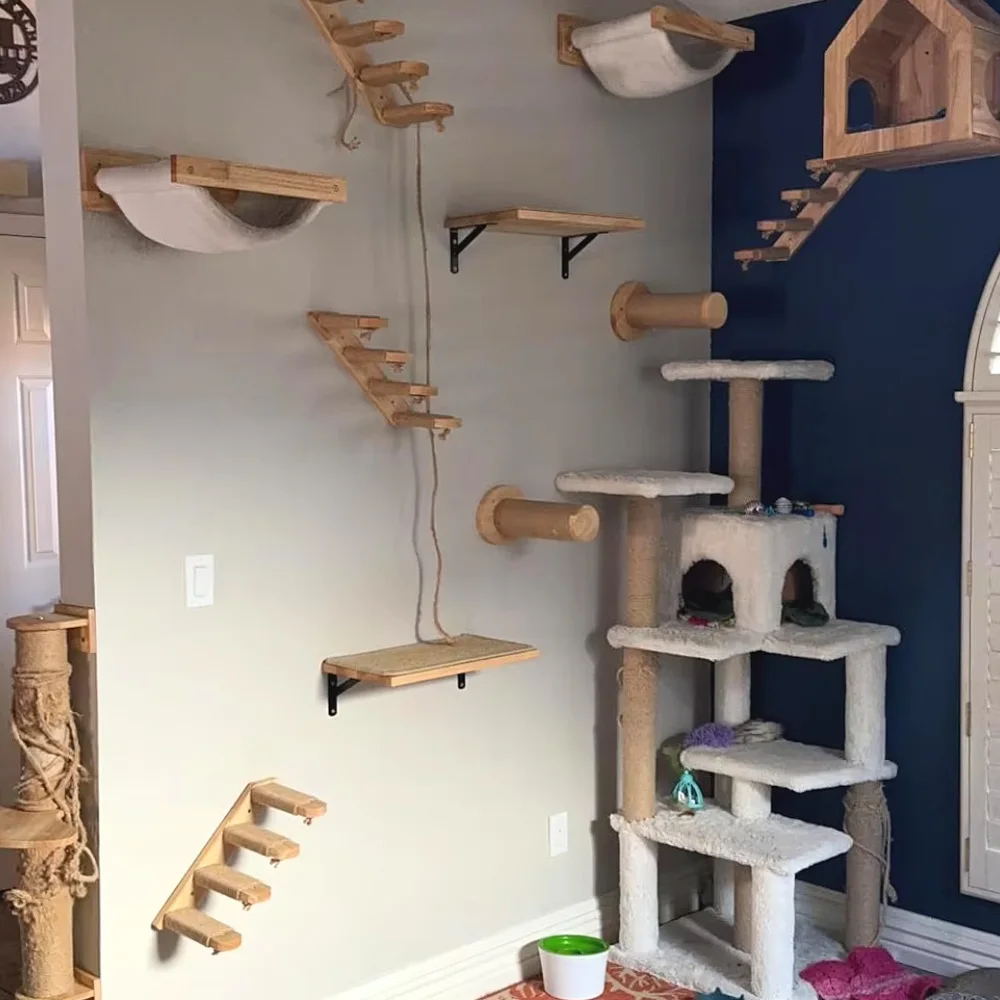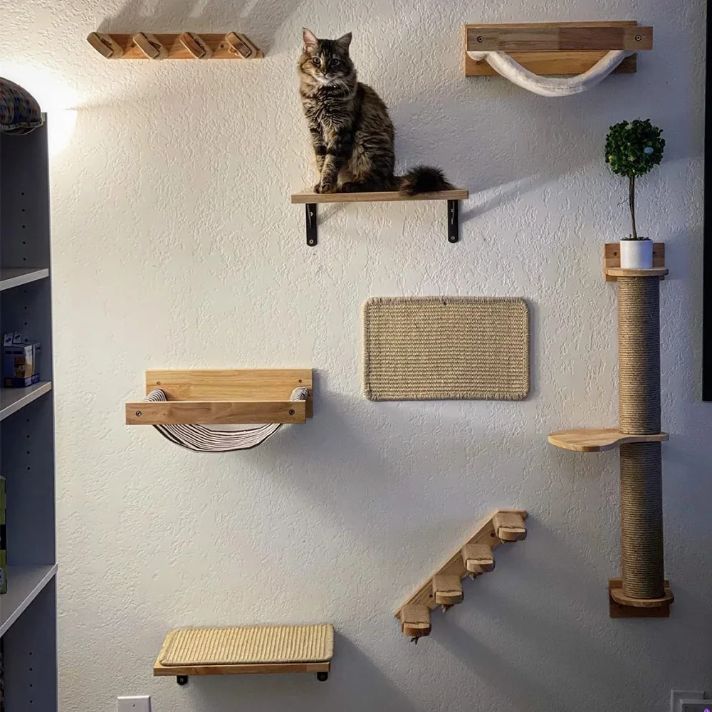 Los muebles para gatos de pared crean un espacio exclusivo para que los gatos se relajen y se entretengan en sus hogares.Combina inteligentemente practicidad y diversión, y puede satisfacer plenamente las necesidades naturales de los gatos en todos los aspectos.