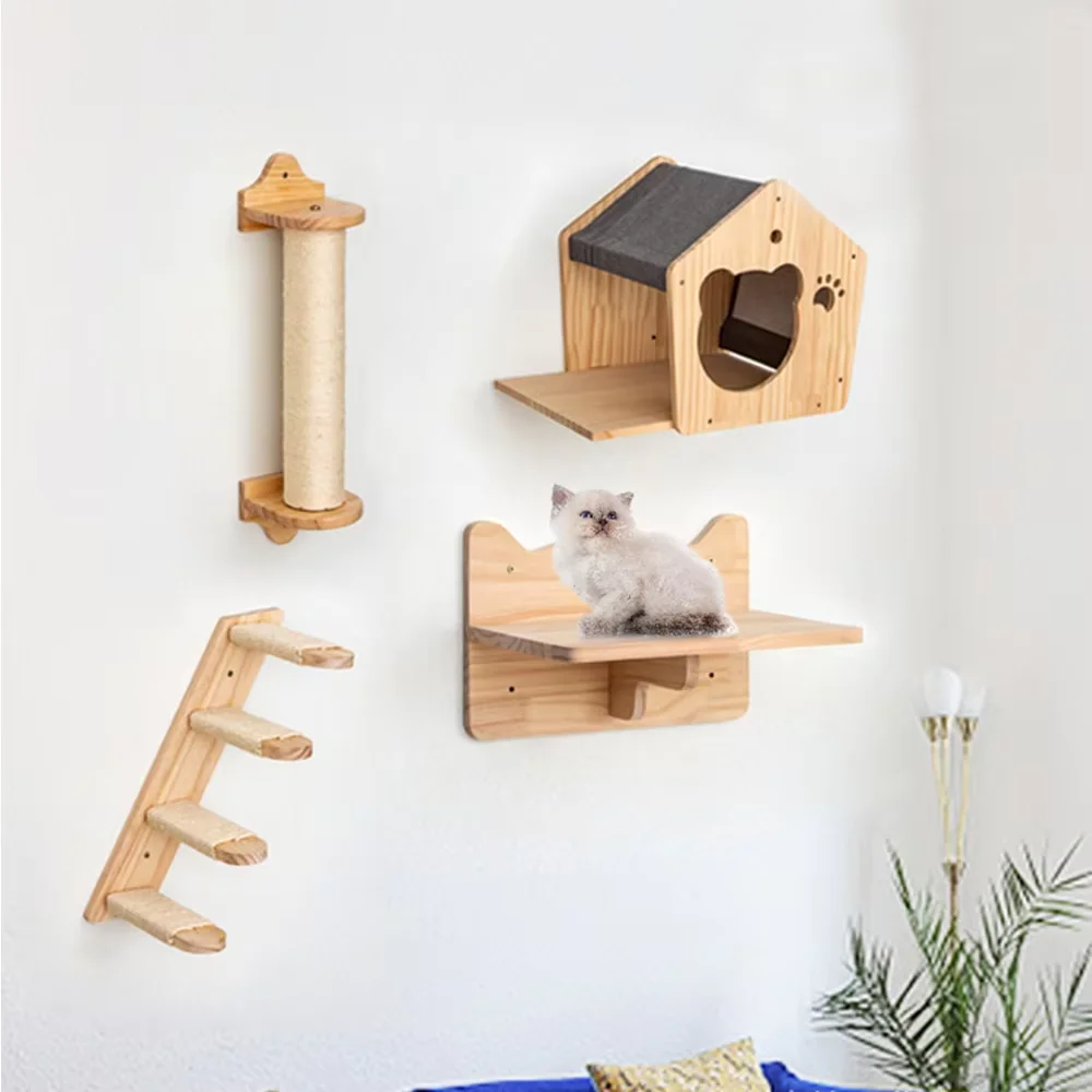 Los estantes de pared para gatos se adaptan al hábito de los gatos de escalar, aumentan el ejercicio y reduciendo la posibilidad de obesidad, lo que es bueno para la salud.Además, le da a los gatos espacio para escalar y evitar estropear la casa.