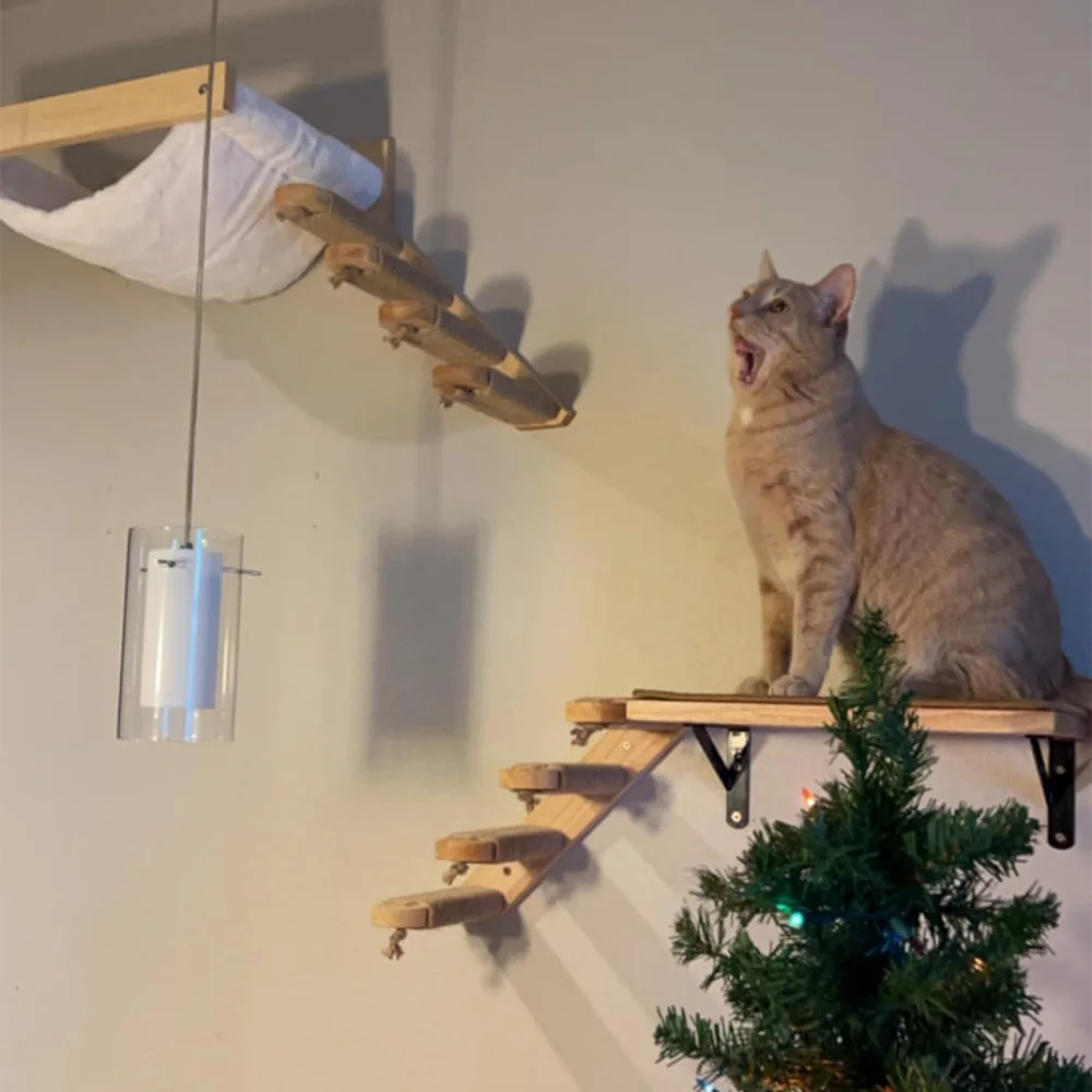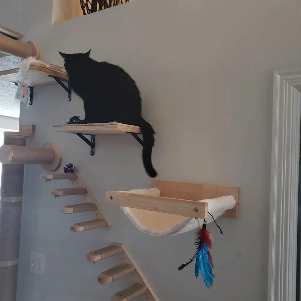 Muebles para gatos montados en la pared, plataformas de madera, escaleras y hamaca para gatos, estantes de pared para gatos para escalada, descanso y entretenimiento para gatos de interior