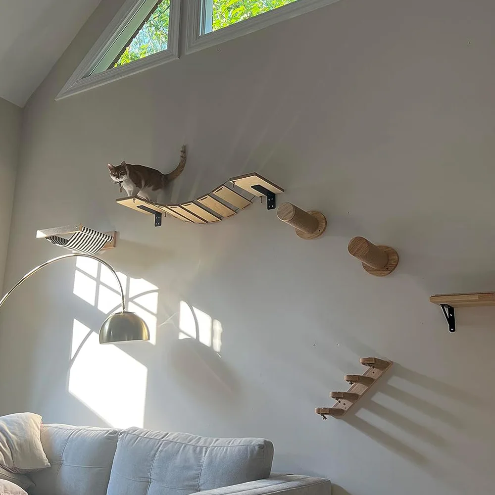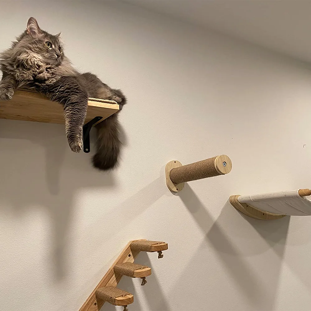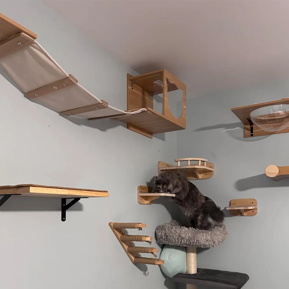 Los estantes de pared para gatos se adaptan al hábito de los gatos de escalar, aumentan el ejercicio y reduciendo la posibilidad de obesidad, lo que es bueno para la salud.Además, le da a los gatos espacio para escalar y evitar estropear la casa.