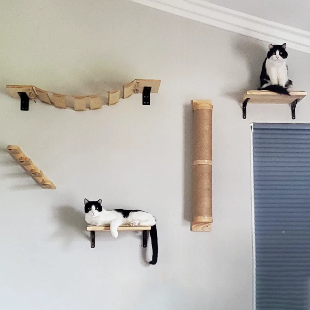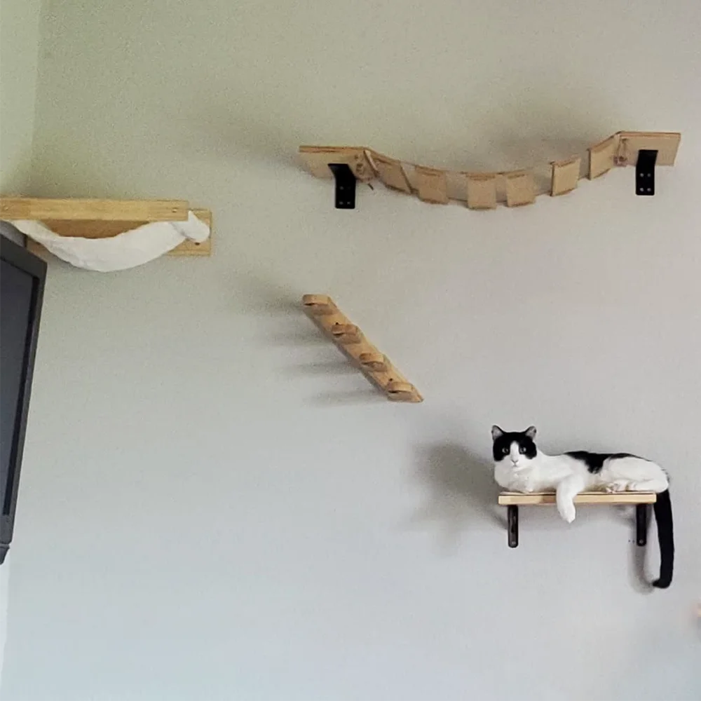 【Healthy Material】- Made from high-quality wood, this indoor cat wall shelf is sturdy and durable, keeping your feline friend safe and comfortable while they play and nap.